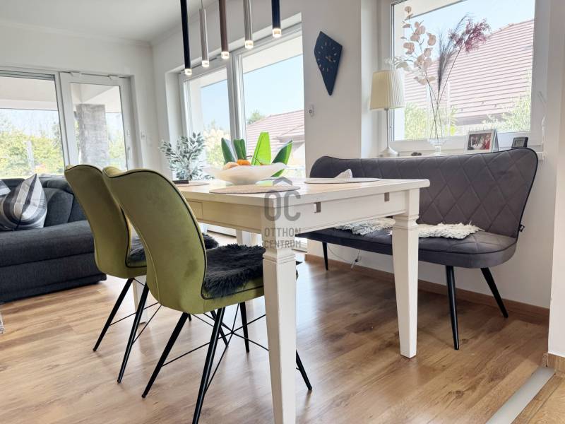 AZ OTTHON CENTRUM KIEMELT KÍNÁLATÁBAN!Engedje, hogy beleszeressen ebbe a különleges, 2022-ben épült, letisztult eleganciát sugárzó otthonba, amely a nyugalmat, a korszerű technológiát és a luxus kényelmét ötvözi.Ez a 150 m²-es földszintes családi ház egy 1188 m²-es, parkosított telken helyezkedik el, és nemcsak a funkcionalitásával, hanem egyedi hangulatával is kitűnik a kínálatból. A ház hátsó udvarából szolid balatoni panoráma nyílik, ami tovább fokozza a természetközeli élményt.Automata öntözőrendszer és különleges kerti részletek tesznek igazán különlegessé. Az otthon ideális választás családoknak, természetkedvelőknek, mint otthonként mint nyaralóként jól funkciónál.Az ingatlan kiváló energetikai és műszaki adottságokkal bír.✅ Műszaki jellemzők, amelyek garantálják a gondtalan mindennapokat:-Földszintes elrendezés, ideális minden életkor számára-Telek mérete: 1188 m²-Lakótér: 150 m²-Garázs: 24 m²-Fűtés :BOSCH elektromos kazán padlófűtéssel, + kandalló a nappaliban a meghitt estékért-Melegvízellátás: 200 literes elektromos bojler-5 kW-os napelem rendszer – rendkívül alacsony fenntartási költségek-Energiaellátás :3 fázis (3 x 16 A)-Tégla falazat + 20 cm-es külső szigetelés-Tetőfedés :Creaton betoncserép tető-Nyílászárók : 3 rétegű műanyag szerkezetű nyílászárók elektromos redőnyökkel és szúnyoghálókkal-Esővíz hasznosítás: 2 db hűtő-fűtő klíma-Biztonság : 4 kamerás megfigyelőrendszer -Elektromos kapunyitó-Esővíz hasznosítás :10 m³-es esővízgyűjtő tartály és automata öntözőrendszerWellness-élmény otthon:A gondozott kert központi éke a sós vizű, 6x4 méteres medence, amely nemcsak nyáron nyújt felfrissülést, hanem egy stílusos életteret is teremt.Belső elrendezés:Tágas, napfényes nappali amerikai konyhával és étkezővel, több hálószoba, külön dolgozószoba, nagyméretű fürdőszoba zuhanyzóval és káddal – minden részletében átgondolt, élhető kialakítás.⸻Ez az ingatlan ideális választás lehet:•Azoknak, akik időtálló, energiatakarékos , minőségi otthonra vágynak a Balaton közelségében,•Családoknak, akik egy harmonikus ,biztonságos életteret keresnek,•Befektetőknek, akik prémium kategóriás kiadható nyaralót vagy állandó bérleményt keresnekEz az ingatlan nem csupán egy ház – ez egy új életminőség záloga, ahol a természet, a nyugalom és a modern technológia kéz a kézben jár.Legyen szó állandó otthonról, nyaralóról vagy befektetési céllal történő vásárlásról, ez a cserszegtomaji gyöngyszem a legjobb választás.AMENNYIBEN FELKELTETTEM ÉRDEKLŐDÉSÉT , FORDULJON HOZZÁM BIZALOMMAL , VÁROM HÍVÁSÁT AZ ORSZÁG LEGNAGYOBB ÉS LEGELISMERTEBB INGATLANKÖZVETÍTŐ HÁLÓZATA NEVÉBEN!