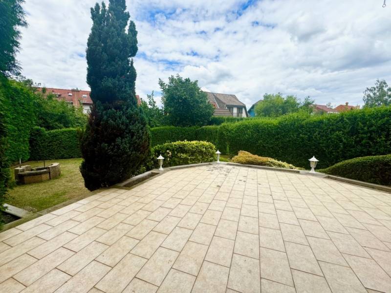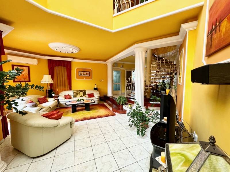 XVII. kerület közkedvelt városrészében, Madárdombon, kertvárosi környezetben, csendes aszfaltozott mellékutcában, 360 nm-es összközműves telken, 1989-ben épült, KIVÁLÓ ADOTTSÁGOKKAL RENDELKEZŐ, nettó 195 nm-es lakóterületű, 3 szintes, 5 szobás, (külön nyíló) dupla komfortos, ablakos konyhás, étkezős, tágas terekkel rendelkező, napos-világos, K-NY-i fekvésű, alacsony fenntartású, gázkazán fűtésű, a nappaliból közvetlen teraszkapcsolatos, jó állapotú, műanyag thermo ablakokkal szerelt, klimatizált, riasztórendszerrel felszerelt ikerház fél, beépített, gépesített konyhával, közvetlenül a házból megközelíthető fűtött garázzsal, mosókonyhával, hobby helyiséggel, finn szaunával, gondozott, öntözőrendszerrel kiépített kerttel eladó!A környék biztonságos, infrastruktúrája és közlekedése kitűnően ellátott!Közelben,: élelmiszer boltok, oktatási intézmények, orvosi rendelő, sportolási lehetőségek. 67-es busz megállója 150 méterre, mellyel az Örs vezér tere kényelmes közlekedéssel 20 perc alatt elérhető! Ezt a házat érdemes megnézni!További részletes tájékoztatásért várom megtisztelő hívását! EA