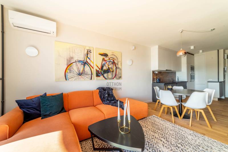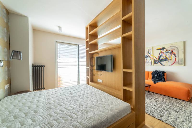 A Bam rakpart egyik ikonikus sarki épületének 7. emeletén kínálunk bérbeadásra egy különleges hangulatú, teljes körűen felújított (2017) lakást. A 9 m²-es teraszról lélegzetelállító, teljes panoráma tárul elénk: a Parlament, a Duna, a Budai Vár és a város legszebb látképe közvetlenül előttünk.Az ingatlan amerikai konyhás nappalival, leválasztott hálószobával, valamint káddal és zuhanyzóval felszerelt, hangulatvilágítással kialakított fürdőszobával rendelkezik. A lakás különlegessége a praktikusan megtervezett beépített szekrényrendszer, amely bőséges tárolóhelyet biztosít.A modern konyha minden igényt kielégít, SMEG berendezésekkel felszerelt, a meleg vizet Ariston bojler biztosítja. A ház liftes, elegáns, reprezentatív lépcsőházzal, közös tároló is tartozik az ingatlanhoz. Parkolás az utcán lehetséges.Bérleti díj: 1500 EUR / hó ( minden költség benne van !!!!víz, villany , közös költségKaució: 2 hónap + 1 havi bérleti díjKiköltözési nyilatkozat közjegyző előtt.Ez a lakás igazi ritkaság a piacon: egyszerre kínál modern belső tereket, kiváló beosztást és páratlan panorámát Budapest szívében .