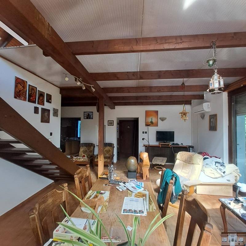 KIZÁRÓLAG A JUDIT INGATLAN-, ÉS HITELIRODA KÍNÁLATÁBAN!!!ALKALMI VÉTEL!!!Monor központjától nem messze egyedi kialakítású, 160 m2 családi ház, 700 m2 botanikus kerttel eladó.Az ingatlan 1984-ben épült masszív betonalapra téglából, fa hőszigetelt nyílászárókkal, és a külső falakat 15 éve 10 cm-es kőzetgyapottal szigetelték.A ház nagyon sok lehetőséget rejt magában, akár 2 család részére is átalakítható igény szerint.A telek első részén található egy kb. 40 m2-es bontandó vályogház, mögé épült 1984-ben a családi ház.A ház lakóterülete kb. 160 m2, melyben földszinti részen található előszoba, étkező/télikert, konyha, kamra, 40 m2-es nappali, fürdő, WC. A nappali folytatásában ki van alakítva egy 32 m2-es műhelyként funkcionáló helység, melynek tetőterében egy iroda és zuhanyzó lett kialakítva. Igény szerint lakhatásra is át lehet alakítani.A ház tetőterében a földszinti nappali felett ki van alakítva egy galériás nappali – mely a télikertre néz le-, valamint egy hálószoba.Az ingatlan fűtése többféleképpen működtethető: gáz kombi cirkó (a két nappaliban padlófűtéssel), 2 cserépkályha, 2 inverteres klíma, valamint a melegvizet villanybojlerrel is lehet készíteni.A házhoz csatlakozik egy kb. 3×5 méteres garázs, mely a házból is megközelíthető.Beépített konyha gépekkel, beépített bútorok, valamint néhány bútordarab az ár részét képezi!!!A telek végében található egy 6×8 méteres féltetős tároló is.Az ingatlan összközműves (gáz, víz, villany, csatorna), valamint ipari áram és a locsoláshoz fúrt kút is van.KEDVES ÜGYFELEINK! IRODÁNK 2025. 12. 20. - 2026. 01. 11.-IG ZÁRVA TART!DÍJMENTES HITELÜGYINTÉZÉS IRODÁNKBAN!!!3 %-os START HITEL, CSOK+, BABAVÁRÓ KÖLCSÖN, KAMATTÁMOGATOTT LAKÁSHITELEK, ….2003 ÓTA AZ ÖNÖK BIZALMÁBAN!