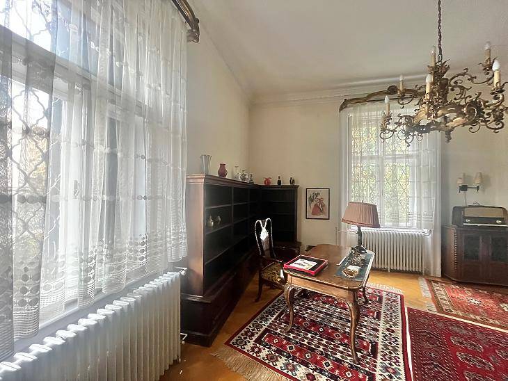 Eladó egy kivételes adottságokkal rendelkező, 195 m²-es, kertkapcsolatos lakás csendes mellékutcában, zöldövezeti környezetben. A lakás külön bejárattal rendelkezik, így teljes intimitást biztosít lakóinak. A 4 méteres belmagasság és a hatalmas ablakok tágas, világos tereket teremtenek, amelyek egyedülálló hangulatot nyújtanak.Az ingatlan 4 szobával, saját pincével és garázzsal rendelkezik, ami kényelmes parkolást és bőséges tárolási lehetőséget biztosít. A társasház kevés lakásos, így nyugodt, családias légkör várja az új tulajdonost.Felújítandó állapotban van, ami kiváló lehetőséget kínál arra, hogy saját ízlésére alakítsa ki az otthonát. A kertkapcsolat pedig ideális választássá teszi mindazok számára, akik szeretik a természet közelségét és a privát szabadtéri teret.Ha egy igazán különleges, világos és tágas otthont keres Budapest egyik legnyugodtabb, zöldövezeti részén, ne hagyja ki ezt a lehetőséget!Fontos információ a hirdetés képei kapcsánA hirdetésben szereplő látványtervek azt mutatják be, hogyan nézhet ki a lakás egy felújítást követően, és milyen potenciál rejlik benne. A jelenlegi tulajdonos azonban a felújítást nem fogja elvégezni a kialakítás teljes mértékben az új tulajdonosra vár. Ez valódi lehetőséget jelent arra, hogy a lakás pontosan olyan legyen, amilyet megálmodott.