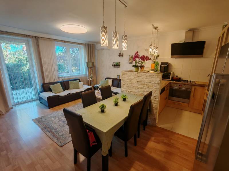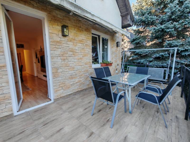 Csak nálunk!Otthon Start hitel is igényelhető!Csömör, Ibolya utca – családbarát ikerház lakás saját kerttelBudapest XVI. kerületének szomszédságában, Csömör csendes utcájában eladó egy 1990-ben épült, tégla ikerház egyik lakása.Az ingatlan nettó 89 m² lakótérrel rendelkezik, amelyhez tartozik egy 45 m²-es garázs és mosókonyha szint, valamint egy 24 m²-es terasz, amely közvetlenül a nappaliból nyílik.Belső elrendezése:-Előszoba – 5,13 m²-Közlekedő – 5,1 m²-Amerikai nappali + étkező – 26,8 m²-Konyha + étkező – 9,18 m²-Szoba – 9 m²-Szoba – 11,1 m²-Szoba – 12 m²-Szoba – 12 m²-Fürdő – 8,13 m²-WC – 1,85 m²-Terasz – 24,1 m²A fő falak 50 cm vastag téglából épültek szigetelés nincs,de nem indokolt,mert kiváló a hőtartása az ingatlannak.Műanyag nyílászárók 2 réteg üveg 5 légkamra. Gázkazán a mosókonyhában nem a lakótérben ,radiátoros fűtéssel.2 db inverteres klíma 320 m² saját kert, amely a ház mögött helyezkedik el, így nyugodt, intim hangulatot biztosít.Garázs + 3 felszíni autóbeálló.Iker szomszéd lakás az emeleten helyezkedik el nyugodt csendes család kiváló hangszigetelés ügyvédi megosztási szerződés van az ingatlanhoz.Hitelezhető az ingatlan!Az kertkapcsolatos lakás ideális választás lehet családok számára, akik Budapest közelségében, mégis nyugodt, kertvárosi környezetben keresnek otthont.Kiváló közlekedés.Jöjjön el nézze meg tegyen ajánlatot!I.V.