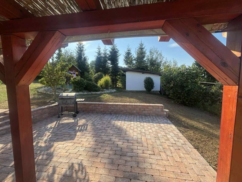 Szombathelytől 8 kilométerre nyugatra fekszik Dozmat település, az Arany-patak jobb partján emelkedő dombon. Kertvárosi csendes utcában eladó egy 2015-ben épült családi ház.Az ingatlanban 3 szoba, amerikai-konyhás nappali, gardrób, fürdőszoba, közlekedő és wc került kialakításra.Meleget Bosch kondenzációs kazán biztosítja radiátoros hőleadással, de alternatív megoldás a nappaliban található kandalló.A remek energetikai paraméterekkel épült házban fa födém (40 cm szigeteléssel) hőszigetelt egyedileg gyártott fa ablakok és ajtók kerültek beépítésre.A szépen gondozott udvaron 12 m2-es tároló, játszótér, 5 méter átmérőjű süllyesztett gépesített medence van.Az ingatlan egyik éke az 50 m-es részben fedett terasz, amely gépesített nyári konyhával felszerelt.Gépjárművek parkolására 40 m2-es fedett beálló készült.Amennyiben csendes kis faluban a határtól néhány kilométerre szeretne élni egy gondosan karbantartott igényes kivitelezésű házban, kérem hívjon és nézzük meg együtt.Kizárólag a GDN ingatlanhálózat kínálatában.