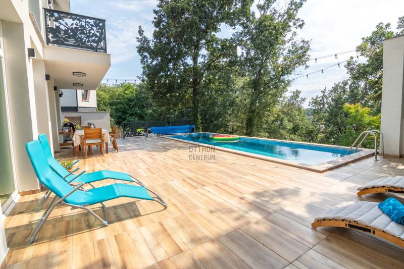 MIÉRT EZT VÁLASSZA?* Lélegzetelállító panoráma a környező tájra.* Hatalmas, 130 m²-es terasz- és erkélyegyüttes saját kültéri medencével.* Prémium minőségű, kompromisszumok nélküli építkezés.* Nagyvonalú terek: 220 m² nettó lakótér, kiváló elrendezéssel 4 szinten.* Ideális családoknak: Tágas közösségi terek és négy különnyíló hálószoba.* Zöldövezeti, presztízsértékű elhelyezkedés Diósdliget csendes részén.* 2 gépjármű számára kialakított beállási lehetőség a telken.* Praktikus tárolás és egyedi hangulat a saját borospincével.AZ INGATLANEz a Diósdligeten található, minden igényt kielégítő, 220 m² nettó (364 m² bruttó) lakóterületű családi ház a luxus és a kényelem tökéletes ötvözete. Az ingatlanhoz egy 300 m²-es, intim kert és egy összesen 130 m²-es terasz- és erkélyegyüttes tartozik, melynek központi eleme a saját medence.A ház négy szinten kínál átgondolt élettereket:* A földszint a társasági élet központja: itt található a 30 m²-es nappali, egy tágas, 30 m²-es konyha-étkező, valamint egy dolgozószoba. Innen nyílik a lenyűgöző, 126 m²-es panorámás terasz és a medencetér, amely tökéletes helyszíne családi és baráti összejöveteleknek.* Az első emeleten kapott helyet a főbejárat, egy tágas előszoba, valamint egy komplett szülői lakrész, mely saját hálószobából, gardróbból és fürdőszobából áll, teljes intimitást biztosítva.* A második emeleten további három, különnyíló hálószoba és egy fürdőszoba található, amely ideális a gyermekek vagy vendégek számára.* A szuterén szinten egy hangulatos borospince és a kazánház kapott helyet.A magas minőségű kivitelezés, a praktikus elrendezés és a páratlan panoráma teszi ezt az otthont igazán különlegessé.KÖRNYÉKDiósdliget a budapesti agglomeráció egyik legkeresettebb, legmagasabb presztízsű része. Csendes, biztonságos, zöldövezeti környezet jellemzi, kiváló levegővel. Az infrastruktúra fejlett, Budapest autóval és tömegközlekedéssel is könnyen és gyorsan elérhető. Ideális választás mindazoknak, akik a város közelségére és a természet nyugalmára egyaránt vágynak.MŰSZAKI ADATOK* Szerkezet: Magas minőségű építés, 15 cm-es külső hőszigeteléssel.* Nyílászárók: Modern, hőszigetelt műanyag ablakok és ajtók.* Fűtés: Gáz-cirkó, padlófűtéssel és radiátoros hőleadókkal kombinálva.* Hűtés: Kiépített klímarendszer.* Terasz és Erkély: Összesen 130 m².* Parkolás: 2 autó számára fedetlen gépkocsibeálló a telken belül.* Extrák: Kültéri medence, borospince.PARKOLÁS2 állásos fedetlen gépkocsi-beálló a saját telken belül.KIKNEK AJÁNLOTT?Tökéletes választás:* Nagyobb családoknak, akik tágas, jól szeparált, többgenerációs együttélésre is alkalmas élettereket keresnek.* Igényes vásárlóknak, akik egy reprezentatív, prémium minőségű és értékálló otthont szeretnének.* A szabadtéri élet kedvelőinek, akik kiélveznék a hatalmas, panorámás terasz és a saját medence nyújtotta lehetőségeket.Irányár: 279.000.000 Ft (kb. 711,000 EUR)Amennyiben az ingatlan felkeltette érdeklődését, keressen bizalommal, hogy további információkkal szolgálhassak és megszervezhessek egy személyes bemutatót.