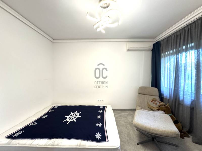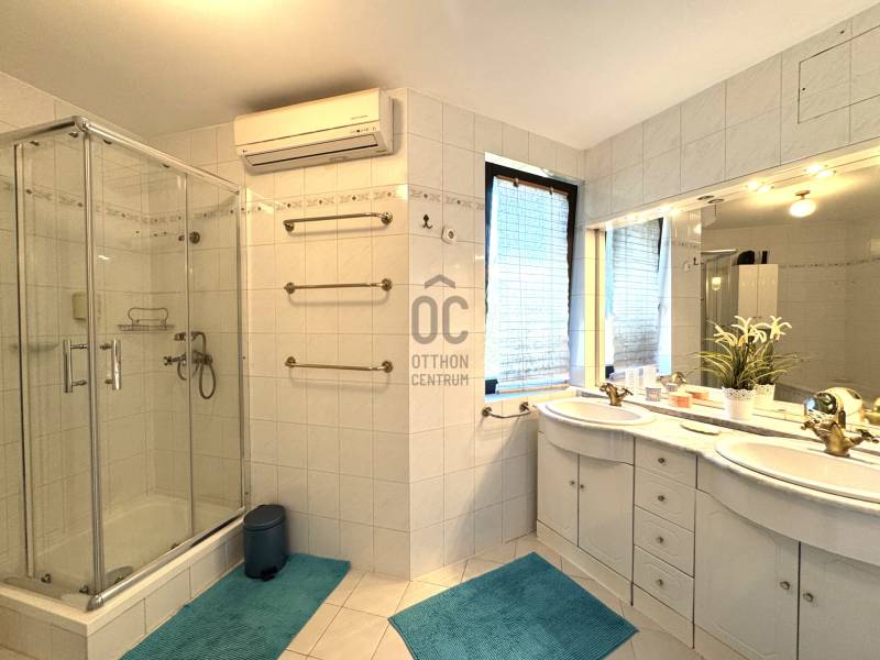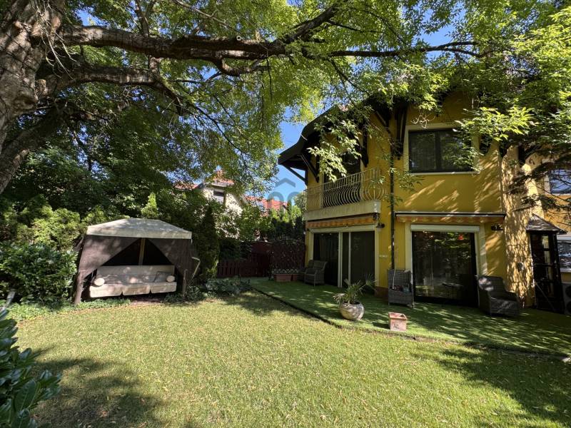 Egy igazán különleges, 280 m²-es, nappali + 3 hálószobás ikerház eladó a II A. kerület egyik legcsendesebb, legzöldebb részén, 450 m²-es, sík, intim kerttel, kulturált, rendezett környéken.Az ingatlan három szinten kínál tágas, világos, élhető tereket. Az ikerház másik felének külön bejárata van egy másik utcáról, így a két házrész teljesen elszeparált – nincs átjárás, nincs átlátás, a privát szféra maximálisan biztosított.A ház főbb jellemzői:•Hatalmas, kertkapcsolatos nappali amerikai konyhával és étkezővel•3 hálószoba + dolgozósarok + beépített tetőtér stúdió jelleggel (konyhával, fürdőszobával, külön lakrészként is használható)•Wellness rész: jakuzzi, finn és infraszauna•Redőnyös, napfényes ablakok, légkondicionált helyiségek•Padlófűtés és radiátoros fűtés kombinációja•Több vendégmosdó, valamint dupla mosdós, ablakos fürdőszoba•2 gardrób helyiség•Vadregényes, parkosított kert örökzöldekkel, díszcserjékkel•Vadonat új Viessmann gázkazán•Beépített spájz, ami még a hűtőszekrényt is elnyeli•Teljes alápincézés, ahol helyet kapott:•3 állásos fűtött garázs•háztartási helyiség, mosókonyha, borospince, tárolók•kazánház és vasalószobaKörnyék:A környék kivételesen nyugodt, zöldövezeti elhelyezkedésű, zömében családi házas övezet, csendes zsákutcában. Kiváló közlekedés és infrastruktúra, iskolák – többek között a Francia Iskola is – rövid távolságon belül elérhetők, ugyanakkor a belváros zaja távol marad.Ez az otthon azoknak szól, akik a kiváló elhelyezkedésen túl egy olyan házat keresnek, ahol a kényelem, az átgondolt terek és a diszkrét luxus természetes alapfeltétel.