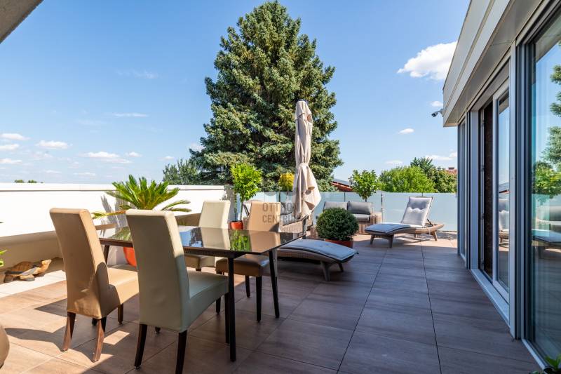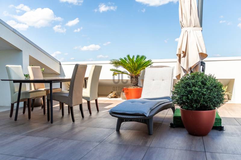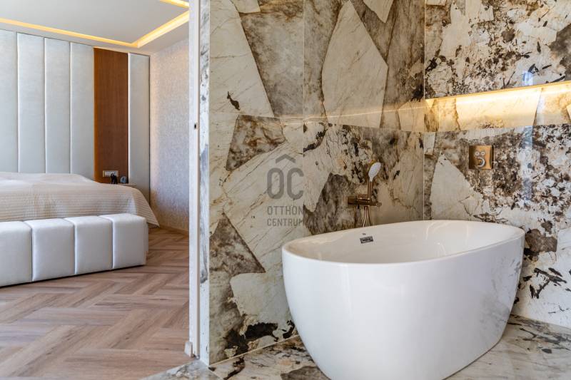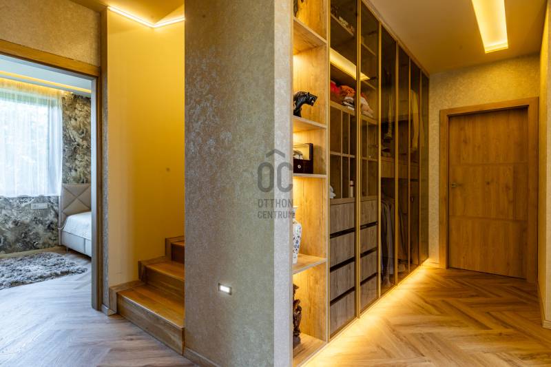 Egy ingatlan, amely újradefiniálja a prémium otthon fogalmát: háromszintes ikerház-rész lifttel, pazar panorámával és kiemelkedő minőséggel. Üdv itthon! RÖVID ÖSSZEFOGLALÓIII. kerület Testvérhegyen, Domoszló útján eladó ez a 2024-ben épült ikerház jellegű, jogilag társasházként nyilvántartott kivételesen magas minőségű lakás. A telek össz. területe 2030m2, melyre 2 épület, 2-2 lakással épült. A ház nyélen keresztül megközelíthető, így az utcától védett, csendes és privát. A kert megosztásra került, így a lakáshoz tartozik egy 111m2-es privát kertrész. A lakás alapterülete a garázsszinttel és a beépített terasszal együtt 206m2, melyhez tartozik egy 48m2-es tetőterasz csodás zöld panorámával, illetve a hálószobákból nyíló további 30m2 erkély. Három szinten 4 háló, ebből háromnak saját fürdője van, dupla állásos garázs elektromos töltővel. A beruházó magának tartotta meg, saját ízlése és igényszintje szerint fejezte be. Eddig jól hangzik? Alább részletesebben a további információk.LOKÁCIÓ – TESTVÉRHEGYA Domoszló út környezete Testvérhegy egyik legkedveltebb része – egy olyan kertvárosi szeglet, ahol a családok nyugalmat, biztonságot és minőségi életet találnak, miközben a főváros pezsgése is karnyújtásnyira van.Itt reggelenként friss levegő madárdal és hegyi panoráma látványa fogad, de iskola, bolt, kávézó vagy uszoda sincs több mint pár perc autózásra vagy sétára. A környék rendezett, gondozott, tele van családi házakkal, óriási fenyőkkel és meglepően jó közösséggel. A Domoszló út ugyan csendes, de közlekedési szempontból kiválóan elérhető: az M0-s gyorsforgalmi út, az Árpád-híd vagy épp Békásmegyer vasútállomása is rövid idő alatt elérhető autóval.Kiváló infrastruktúra – Minden, ami a család kényelméhez kellIskolák, óvodák: A környék kiemelkedő oktatási lehetőségeket kínál, köztük a népszerű Csillaghegyi Általános Iskola, a Bárczi Géza Általános Iskola vagy a Waldorf Óvoda és - Iskola is rövid autóútra található.A közeli Auchan, Decathlon és OBI áruházak mellett elérhető a Római-parti kis piac, a Lajos utcai termelői piac, vagy épp a helyiek egyik kedvence, a Csillag Center, ahol minden kéznél van – patika, posta, pékség és kávézó is. Több magánorvosi rendelő, gyermekorvos és a Szent Margit Kórház is gyorsan elérhető szükség esetén.A környék valódi ereje nemcsak a praktikum, hanem az életminőség:A Római-part 10 percen belül elérhető – bicikliúttal, éttermekkel, fagylaltozókkal és a Dunára néző stégekkel, ahol egy családi délután is nyaralásnak tűnik. A Duna-parti sétány, a Kossuth Lajos üdülőpart és a Fellini Római Kultúrbisztró a helyiek kedvenc találkozóhelyei – kulturális programokkal, élő zenével, naplementés borozásokkal. Csillaghegyi Árpád Forrásfürdő: teljesen felújított, egész évben működő wellness- és élményfürdő – beltéri medencékkel, szaunavilággal, családi élményzónával. Hármashatár-hegy vagy a közeli Kevély-erdő pedig tökéletesek egy hétvégi túrázáshoz, családi piknikhez vagy kutyasétáltatáshoz.A HÁZA ház friss, 2024-es átadással, gondos tervezés és kivitelezés eredményeként jött létre. Az ingatlan már az első pillantásra lenyűgöz: a karakteres, mégis elegáns homlokzat, a nagy üvegfelületek és az egyedi formavilág azonnal kiemelik a tömegből. Az épületben saját, privát lift található, amely megkönnyíti a mindennapokat – generációkon átívelő otthonná is válhat.A három szinten elosztott lakótér belsőépítészetileg is kivételes: letisztult, mégis meleg enteriőr, prémium burkolatok, időtálló anyaghasználat, és minden apró részletre kiterjedő figyelem jellemzi. A nappali tágas és világos, közvetlen teraszkapcsolattal – a panorámás kilátás pedig minden évszakban páratlan élményt nyújt. Magazinba illő en-suite hálószobái privát szférát biztosítanak a család minden tagja számára.Igény szerint szívesen küldök részletes műszaki leírást, amely tartalmazza a az épült általános jellemzőit, a épület-szerkezeti elemek leírását, műszaki specifikációkat, épületgépészeti és elektromos leírást, Smart Home csomag (Okos Otthon) leírást, stb.Parkolás - 2 állásos garázsban, elektromos töltővelKiknek ajánljuk?Ez az ingatlan tudatosan családok számára készült: akik értékelik a természet közelségét, a csendes, biztonságos környezetet, ugyanakkor nem szeretnének kompromisszumot kötni a városi kényelemmel és a minőséggel. A liftes kialakítás többgenerációs együttélést is lehetővé tesz, míg a belső tér rugalmassága alkalmazkodik a változó élethelyzetekhez is.Szívesen részt venne egy élményekkel teli, minden érzékszervre ható ingatlan bemutatón? Csak a megadott számot szükséges tárcsáznia hozzá!----------------------------------------------Díjmentes, bankfüggetlen hiteltanácsadással támogatjuk vevő ügyfeleinket a számukra legelőnyösebb finanszírozási döntések meghozatalában. Opcionálisan igénybe vehető kiegészítő szolgáltatásainkkal – mint ügyvédi közreműködés, energetikai tanúsítvány vagy villamos biztonsági felülvizsgálat – teljes körű szakmai támogatást nyújtunk az adásvétel folyamatának minden egyes lépésénél.----------------------------------------------A hirdetésben szereplő információk tájékoztató jellegűek. A tévedés és az árváltoztatás jogát fenntartjuk. Az esetleges elírásokért és technikai hibákért felelősséget nem vállalunk.