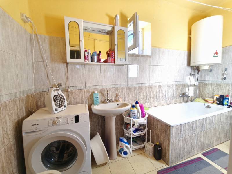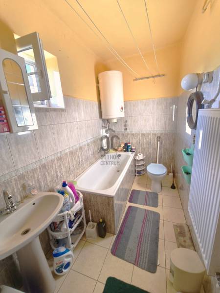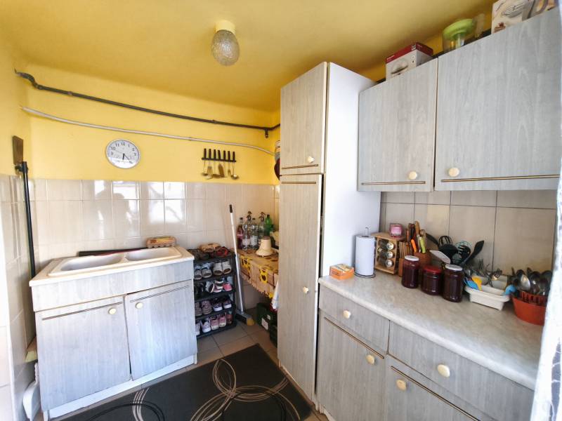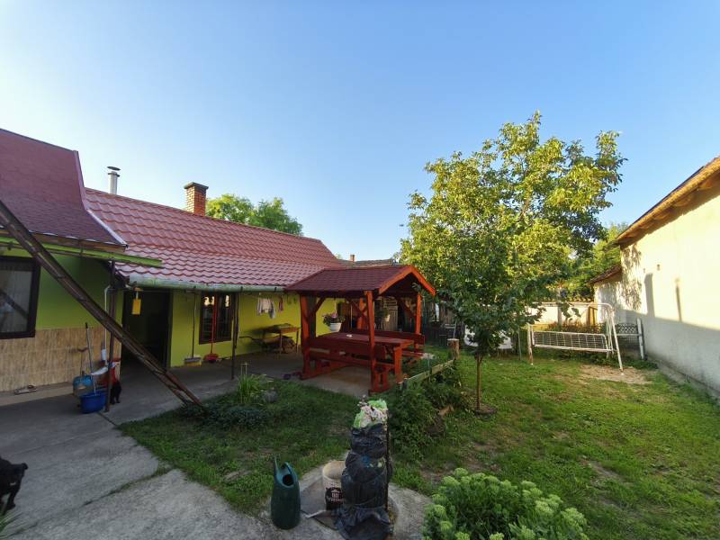 Eladó, egy 1978 - ban épült családi ház Püspökladány olyan részén, ahol a zöld terület a szemben szomszéd.Csend, béke, és nyugalom van a környéken.A telek : 605 m2, az ingatlan hasznos alapterülete : 81 m2Az ingatlan statikailag nagyon jó állapotban van, beton alapot szigetelték, és arra kerül rá a vályog falazat, tető zsindelyes fedésű. Repedés, sűllyedés mentes a ház.Ennek a technológiának a nagy előnye, hogy télen melegen, nyáron hűvösen tarja a lakást.Helyiségei : nappali - étkező egy légtérben ( de kialakítható: konyha - étkező - nappali is egyben ), 2 db nagy szoba, fürdő , wc , külön főzőfülke, és külön konyha, illetve a tágas közlekedő. ( alaprajzot mellékeltem )Ezen kívül több tárolásra alkalmas épület is megtalálható a telken.Jellemzői : födém 15 cm szigetelést kap a napokban, fűtése : gázcirkó radiátor hőleadókkal, a gázkazánt most cserélik le WESTEN kondenzációs kazánra, műanyag ablakok, műanyag bejárati ajtó, stb..Az udvaron található filagória a vételár részét képezi.Az ingatlan per , tehermentes.Ha felkeltettem az érdeklődését, kérem hívjon bizalommal.
