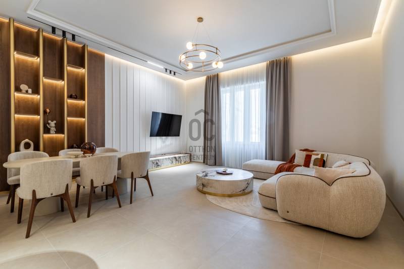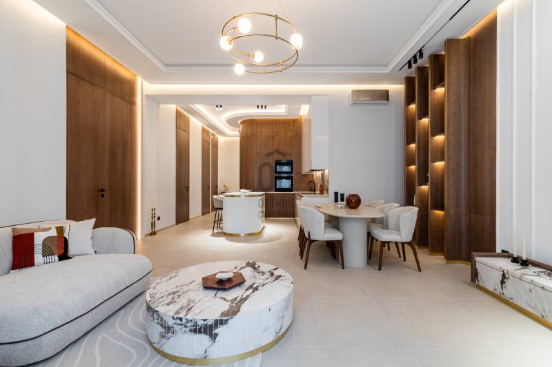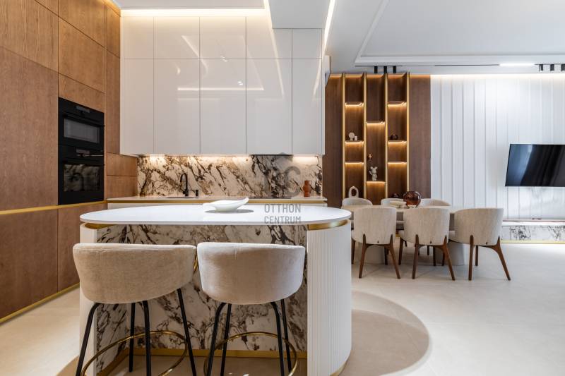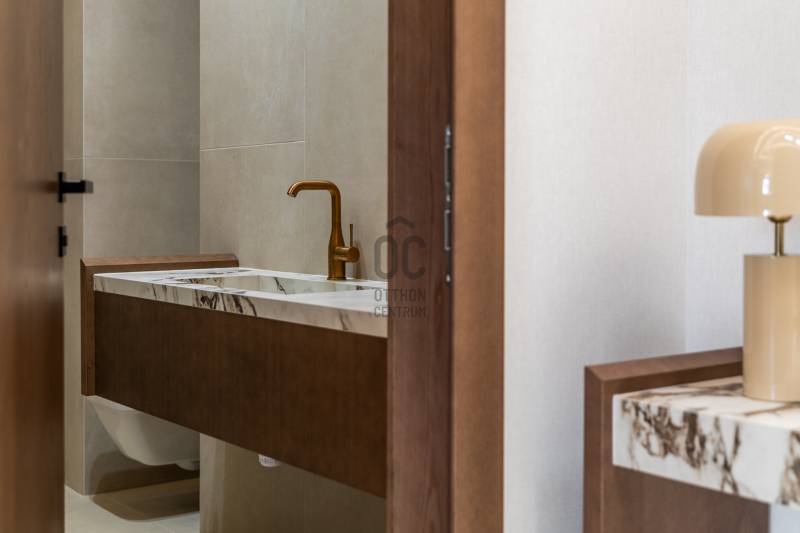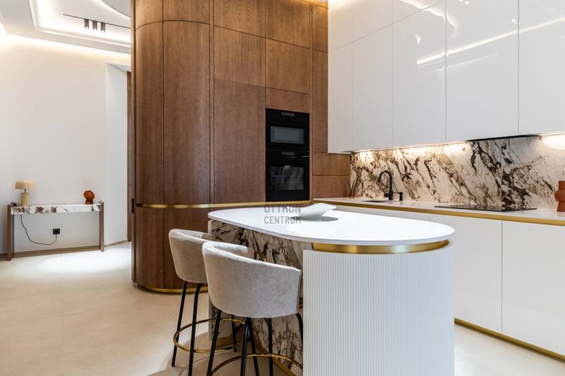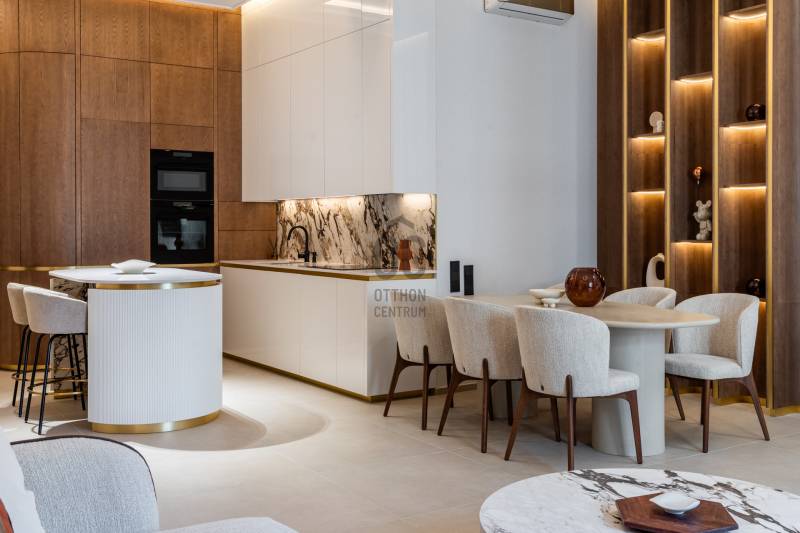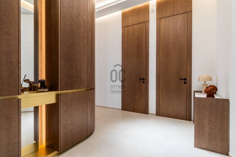 Kulcsrakész érték prémium lokációban. Üdv itthon! RÖVID ÖSSZEFOGLALÓ A Szervita tér 5. szám alatt, egy frissen felújított, II. emeleti, 106 m²-es lakás keresi új tulajdonosát. Az ingatlanban egy tágas nappali és , teljeskörűen gépesített konyha, fő hálószoba gardrób -és fürdő kapcsolattal, egy vendégszoba, egy külön mosdó és még egy külön zuhanyzós fürdő található. K-i tájolású, padlófűtéssel és klímás hűtéssel felszerelt. Minden részletében a magas minőség, és a kortárs esztétika érvényesül. HELYSZÍN – A város lüktetése karnyújtásnyira A Szervita tér Budapest egyik legfrekventáltabb, mégis intim pontja: a belváros pezsgésétől karnyújtásnyira, de egy eldugottabb, csendesebb térrel körülölelve. Innen néhány perc séta a Váci utca, az Erzsébet tér vagy épp a Duna-part – a város legfontosabb kulturális, üzleti és gasztronómiai helyszínei egyetlen sarokra. A környék infrastrukturálisan is első osztályú: M3-as metró, Deák tér közvetlen elérhetőséggel Éttermek, kávézók, dizájner üzletek, bankok és szolgáltatások közvetlen közelben Tömegközlekedés, parkolóházak, gyalogos zónák optimális kombinációja AZ ÉPÜLET – Történeti háttér és építészeti karakterA Szervita tér 5. szám alatt álló épületet Lajta Béla, a korai magyar modern építészet egyik legjelentősebb alakja tervezte. Az 1911–1912 között épült ház eredetileg üzletháznak készült, és ma is őrzi az időtálló arányokat, valamint az építész egyéni látásmódjának nyomait. Az épület „Rózsavölgyi-házként” is ismert, mivel az alsó szinten a legendás Rózsavölgyi Zeneműbolt és kiadó működött és működik ma is, a tér kulturális karakteréhez szorosan hozzájárulva. Az ingatlan helyi védelem alatt áll, és a Szervita tér városképi egységének meghatározó része.A tér közvetlen szomszédságában található a Belvárosi Szent Anna-templom, a Szervita rend barokk stílusú temploma, mely 1725 és 1732 között épült a rendház részeként. A templom előtti nyitott tér egyszerre hordoz történelmet és urbánus nyugalmat – valódi ritkaság a belvárosi szövetben.A Szervita tér másik nevezetes épülete a Török Bankház, a magyar szecesszió egyik ikonikus alkotása, melyet Böhm Henrik és Hegedűs Ármin terveztek 1906-ban. Ez a tér valóban Budapest egyik legsokrétűbb, legösszetettebb városi színtere: történelmi korszakok, stílusok és funkciók találkoznak benne – harmonikusan, mégis karakteresen. A LAKÁS Az enteriőrben uralkodó természetes tónusokat a meleg fával burkolt felületek, a lágyan textúrázott kárpitok és a márvány felületek egyensúlya határozza meg. Finomat érezhető az egyensúly a hideg -és meleg felületek között, aki erre érzékeny azonnal feltűnik számár a gondos odafigyelés, mellyel sikerült egy időben kialakítani a letisztult luxus és az otthonosság érzetét. A nappali, a konyha és az étkező egy tágas, jól átjárható térben kapcsolódik össze – a kialakítás átgondolt, mégis légies. A magasfényű frontokkal és aranyszegélyekkel hangsúlyozott konyhában minden részlet a precizitást és stílust szolgálja, miközben a márvány mintázat a nappali dohányzóasztalán és a falburkolatokon is visszaköszön. A hálószoba hangulata diszkrét, de karakteres, külön gardróbszoba tartozik hozzá finoman ívelt polcrendszerrel és beépített világítással. A fürdőszoba azonos stílusban készült: szabadon álló káddal és elegáns arany csaptelepekkel hívja lassításra a ritmust, míg a zuhanyzós kialakítás a funkcionalitás jegyében fogant. A világításrendszer egyedileg tervezett: rejtett LED-ek, designlámpák és mennyezeti megoldások teszik dinamikussá a fények játékát. A fűtést padlófűtés, a hűtést klímaberendezés biztosítja – a gépészet és burkolatok is a felújítás során teljesen megújultak. AJÁNLÁS BEFEKTETŐKNEK – Ritka minőség, kiemelkedő érték egyedülálló lokációban A Szervita tér közvetlen közelében, Budapest egyik legkeresettebb belvárosi mikrolokációjában elhelyezkedő lakás nem pusztán elhelyezkedésével, hanem a kivitelezés színvonalával is kitűnik a piaci kínálatból. A teljeskörű, magas minőségű felújítás, az enteriőr egységes dizájnkoncepciója, valamint a műszaki felszereltség olyan szintet képvisel, amely csak kevés hasonló paraméterű lakásra jellemző. A lakás azonnal, külön beruházás nélkül hozamtermelő egységként is aktiválható – legyen szó hosszú távú kiadásról, céges bérlőről vagy akár rövid távú prémium vendégkínálatról. A környék keresletét folyamatosan táplálja a jelenlévő nemzetközi vállalati szféra, a diplomáciai központok és a belváros turisztikai súlypontjai. A Deák tér, a Duna-part, a Váci utca vagy a Bazilika gyalogosan pár percen belül elérhető, ami kiemelkedő bérlői komfortot és állandó keresletet biztosít. Ez az ingatlan tehát nemcsak esztétikai élmény, hanem racionálisan is védhető, értékálló befektetés a budapesti prémium kategóriában – azoknak, akik hosszú távon gondolkodnak minőségben.