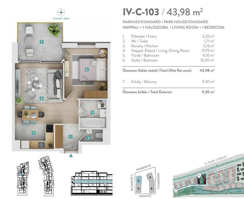 Prémium minőségű, azonnal költözhető, nagy teraszos lakás a Lake 11-benKépzeld el, hogy minden reggel a saját teraszodon kezdődik a napod, ahol a fák között átszűrődik a napfény, és a Kánai-tó nyugalma ölel körül. Ez a lakás egyszerre adja meg a modern városi élet kényelmét és a természet közelségét.A Lake 11 Budapest XI. kerületének új ékköve, Kőérberek zöldövezetében, közvetlenül a tó partján. Itt a csendes, parkos környezet és a belváros gyors elérhetősége kéz a kézben jár.LAKÁSA 44,12 m²-es, nappali + hálószobás otthon nyugati tájolású, így a teraszról (+9,23 m²) esténként a naplementében gyönyörködhetsz. Vadonatúj, első tulajdonostól, prémium kivitelezéssel és teljes garanciával.A gépesített konyha elegáns és praktikus: sütő, főzőlap, mosogatógép, hűtő és elszívó is a része. A háromrétegű alumínium nyílászárók és a nappali tolóajtaja beengedik a fényt, a beépített árnyékolás és az okosotthon-rendszer pedig modern kényelmet ad.A lakáshoz igény esetén saját tároló 2,78 m2 (+3 M Ft ) és 2 db felszíni parkoló (+3,9 M Ft/db) is vásárolható.ÉPÜLETA geotermikus energiával működő mennyezeti hűtés-fűtés rendszere nemcsak környezetbarát, hanem A+ energiabesorolást is biztosít, így a fenntartási költségek alacsonyak. A közös terek igényes kialakítása és a biztonsági rendszer tovább növeli a lakás értékét.LAKÓKÖRNYEZET ÉS SZOLGÁLTATÁSOKA közelben fitneszterem, uszoda, strand, fitneszterem, tenisz- és squashpálya, kerékpárút található: Legyen szó egy fárasztó nap utáni lazításról vagy egy hétvégi kikapcsolódásról, minden adott, hogy feltöltődj — mindez egy lépésre az otthonodtól. A Kánai-tó revitalizációja már idén elkezdődik: Belső parkok, zöldterületek, árnyas pihenőpontok létesítése szolgálja majd az itt élők kikapcsolódását. A humán infrastruktúra fejlesztése érdekében körzeti felnőtt és gyermekorvosi rendelő, valamint magánüzemeltetésű óvoda létesül. KIVÁLÓ ELHELYEZKEDÉSItt élve nem kell választanod a csendes zöldövezet és a városi élet között. A 41-es villamos két megállója is a lakópark közelében van, így kényelmesen eljuthatsz akár a belvárosig is. A 187-es busz mindössze 15 perc alatt visz a Kelenföldi Metróállomásra, ahonnan már a város bármely pontja gyorsan elérhető. Autóval pedig pár perc alatt felhajthatsz az M1, M7 vagy M0 autópályákra, és percek alatt az Etele Plázánál találod magad.Ha pedig kerékpárral indulnál útnak, a Kánai-tó partján halad az EuroVelo 14 nemzetközi bicikliút, amely egészen a Balatonig vezet – tökéletes hétvégi kirándulásokhoz, sportoláshoz vagy egy könnyed délutáni tekeréshez.Befektetésnek is tökéletes választás: a dinamikusan fejlődő környék és a magas bérleti kereslet hosszú távon is garantálja az értékállóságot.Ne csak álmodozz róla – éld át, milyen, amikor a természet és a városi élet tökéletes harmóniában van.----------------------------------------------Díjmentes, bankfüggetlen hiteltanácsadással támogatjuk vevő ügyfeleinket a számukra legelőnyösebb finanszírozási döntések meghozatalában. Opcionálisan igénybe vehető kiegészítő szolgáltatásainkkal – mint ügyvédi közreműködés, energetikai tanúsítvány vagy villamos biztonsági felülvizsgálat – teljes körű szakmai támogatást nyújtunk az adásvétel folyamatának minden egyes lépésénél.----------------------------------------------A hirdetésben szereplő információk tájékoztató jellegűek. A tévedés és az árváltoztatás jogát fenntartjuk. Az esetleges elírásokért és technikai hibákért felelősséget nem vállalunk.