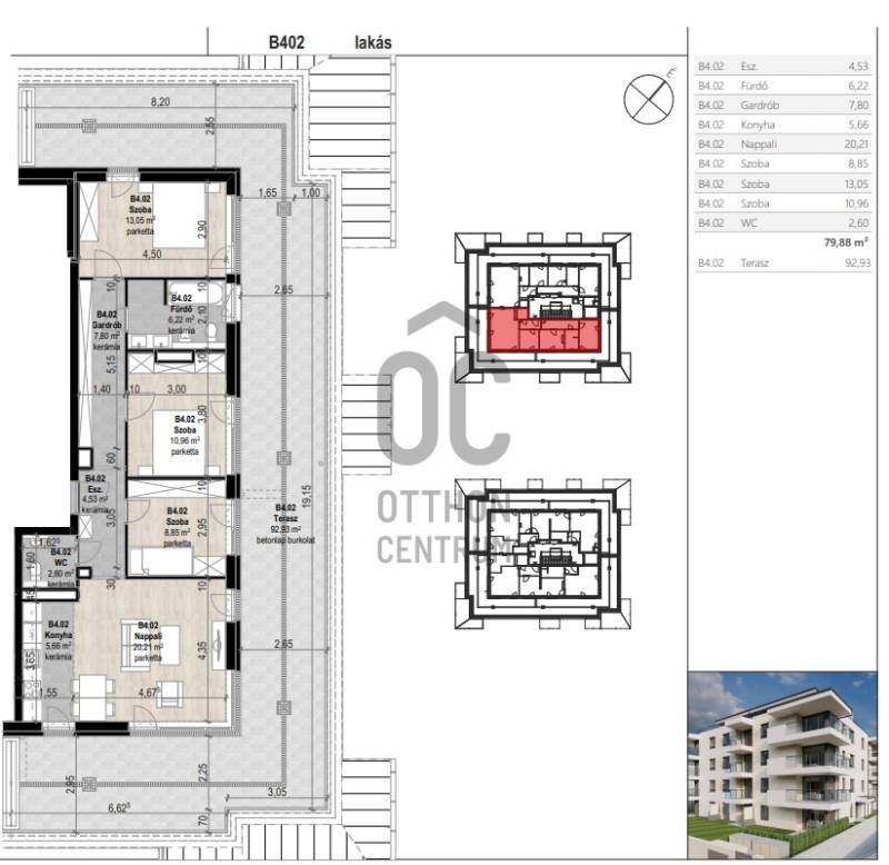 Igényes otthonok ZuglóbanZugló új városnegyedének központjában kimagasló műszaki felszereltséggel rendelkező lakások!A társasház 2 épületből áll, 22 + 22 lakásból. Kis létszámának köszönhetően nagyon családias és kellemes. A lakásokhoz mélygarázsban elhelyezett tárolók és parkolóhelyek tartoznak.PENTHOUSE LAKÁS, KISLÉTSZÁMÚ TÁRSASHÁZBAN!!!!- liftes társasház 4. emeletén 4 szobás ingatlan- 79,88 nm alapterületű, 92,93 nm terasszal- 4 szobás (amerikai konyhás nappali 26 nm, szobák 13,05 nm + 8,85 nm valamint 13,05 nm)- a tulajdonosok kényelmét biztosítja a 7 nm-es gardrób helyiség- fűtés, hűtés: levegős hőszivattyús rendszert használ, mennyezeti fűtés-hűtés kialakítással- a lakás belső ajtókkal, burkolatokkal, szaniterekkel kerül átadásra- gépkocsi beálló külön vásárolható- 3 rétegű hőszigetelő üvegezéssel, vakolható rejtett redőnydobozzal, elektromos alumínium redőnnyel-, távirányítóval.További információval, megtekintéssel kapcsolatban keressen bizalommal!Projekt bemutatásaZugló új városnegyedének központjában kimagasló műszaki felszereltséggel rendelkező lakások várják új tulajdonosaikat. Az ingatlanok modern kialakítása, látványos homlokzata, valamint a hőszivattyús fűtésrendszerük által biztosított alacsony rezsiköltség ideális választást jelentenek igényes, tudatos vásárlók és ingatlanbefektetők számára.Az épületek között zöld parkok és sétálóutcák kerülnek kialakításra, a beruházás átadása pedig 2026 első negyedévében várható.LOKÁCIÓA társasház közvetlenül az Uzsoki utcai kórház mögött található, a XIV. kerület egyik fő közlekedési csomópontjánál. A belvárosból és az agglomerációból egyaránt könnyen megközelíthető. Az Erzsébet királyné útján több buszjárat biztosít közvetlen kapcsolatot a belvárossal, míg a Mexikói úti M1 metróállomás gyalog mindössze 5 percre helyezkedik el. Az épület közelében található az M3 autópálya, amely az M0 körgyűrűvel összeköttetést biztosít, megkönnyítve az utazást.AZ ÉPÜLET JELLEMZŐIA társasház 44 lakásból áll, amelyekhez mélygarázsban elhelyezett tárolók és parkolóhelyek tartoznak.Nyílászárók és bejárati ajtók:A főbejárati ajtók szürke porszórt alumínium szerkezetűek, hő- és biztonságtechnikai szempontoknak megfelelő hőszigetelt üvegezéssel. A homlokzati nyílászárók 6 légkamrás Deco típusú, 3 rétegű hőszigetelő üvegezéssel rendelkeznek, vakolható rejtett redőnydobozzal és távirányítóval vezérelhető elektromos alumínium redőnnyel.Lakások jellemzői:A földszinti lakásokhoz terasz és kert is tartozik. Az épületekben födémbe integrált mennyezeti hűtő-fűtő rendszert építettek ki, amely egyedi hőmennyiség-mérőkkel szabályozható.Közösségi terek és zöld környezet:A belső udvar tájépítész által megtervezett, pihenésre alkalmas zöld környezetet kínál, ahol ültetett fák árnyékolnak, és a szezonális növények díszítik a területet. A locsolás automata öntözőrendszerrel biztosított.MŰSZAKI MEGOLDÁSOKFűtés és hűtés:Az épület energiatakarékos LG/SAMSUNG vagy azzal egyenértékű levegős hőszivattyús rendszert használ, mennyezeti fűtés-hűtés kialakítással. Az új lakók modern, környezetbarát megoldásokkal és kellemes zöld környezetben találhatják meg álomotthonukat.