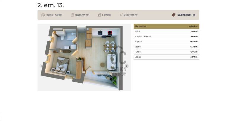 Debrecen frekventált városrészében, a Postakertben új építésű, 37-75 nm-es prémium lakások eladók. A 17 lakásos, liftes, 3 emeletes épületben a privát kertkapcsolatos lakásoktól a penthousig mindent megtalál.Ez a 2. emeleti lakás 40,68 nm-es, nappali-étkező-konyha +1 szobás, 3,8nm-es loggával.Jellemzők:-Kulcsrakész, precíz kivitelezés, magas színvonalú burkolatokkal és szaniterekkel-Hőszivattyús fűtési rendszer padlófűtéssel, hőszivattyús klímák- Modern hőközpont, lakásokban egyedi rádiós almérőkkel-3 rétegű műanyag nyílászárók a kiváló hő- és hangszigetelés érdekében-Extra hőmegtartó képességű innovatív, Porotherm X-therm tégla falazat, grafitos homlokzati hőszigeteléssel-Személyfelvonó-Zárt lépcsőház, modern homlokzat-Kiváló energetikai besorolás, alacsony fenntartási költségek-Riasztórendszer előkészítés-Rejtett redőnytok elektromos kiállással-Tágas, világos belső terek prémium nyílászárókkal-Teremgarázs beállók, tárolók-Lift közvetlen eléréssel a parkoló szintrőlIskola, óvoda,tömegközlekedési lehetőségek a közelben, a belváros gyalogosan is megközelíthető. Autópálya felhajtó, bevásárló központok 3 perc autóútra vannak. Ideális választás családoknak, pároknak vagy befektetőknek. Ha új építésű, energiatakarékos, kulcsrakész otthonra vágyik zöld környezetben, ne hagyja ki ezt a lehetőséget!Projekt bemutatása-