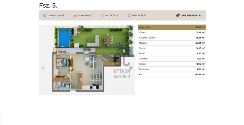 Debrecen frekventált városrészében, a Postakertben új építésű, 37-75 nm-es prémium lakások eladók. A 17 lakásos, liftes, 3 emeletes épületben a privát kertkapcsolatos lakásoktól a penthousig mindent megtalál.Ez a földszinti kertkapcsolatos lakás 62,45 nm-es, nappali-étkező-konyha +1 szobás, 8,8 nm-es terasszal és 67 nm-es kerttel.Jellemzők:-Kulcsrakész, precíz kivitelezés, magas színvonalú burkolatokkal és szaniterekkel-Hőszivattyús fűtési rendszer padlófűtéssel, hőszivattyús klímák- Modern hőközpont, lakásokban egyedi rádiós almérőkkel-3 rétegű műanyag nyílászárók a kiváló hő- és hangszigetelés érdekében-Extra hőmegtartó képességű innovatív, Porotherm X-therm tégla falazat, grafitos homlokzati hőszigeteléssel-Személyfelvonó-Zárt lépcsőház, modern homlokzat-Kiváló energetikai besorolás, alacsony fenntartási költségek-Riasztórendszer előkészítés-Rejtett redőnytok elektromos kiállással-Tágas, világos belső terek prémium nyílászárókkal-Teremgarázs beállók, tárolók-Lift közvetlen eléréssel a parkoló szintrőlIskola, óvoda,tömegközlekedési lehetőségek a közelben, a belváros gyalogosan is megközelíthető. Autópálya felhajtó, bevásárló központok 3 perc autóútra vannak. Ideális választás családoknak, pároknak vagy befektetőknek. Ha új építésű, energiatakarékos, kulcsrakész otthonra vágyik zöld környezetben, ne hagyja ki ezt a lehetőséget!Projekt bemutatása-