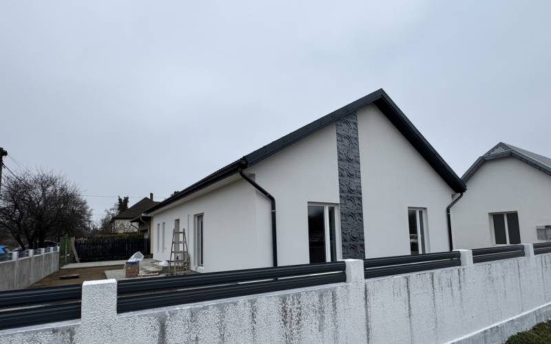Budapestről 25 perc alatt elérhető, M7-es autópályáról 2 perc alatt megközelíthető, mégis csendes, hangulatos utcában található, újáépített, barátságos otthon várja beköltöző lakóit!A telken 2 különálló és külön megközelíthető ház épült, melyek társasházként, albetétesítve vannak bejegyezve. A kert kizárólagos használatban van, ez a Földhivatalban is bejegyzésre került.A 4 szobás ház 110 nm hasznos lakóterülettel rendelkezik, kényelmes életteret biztosít a családtagok számára. Helyiségei:- nappali 18 nm- konyha és étkező 19 nm- 3 szoba egyenként 20, 24 és 10 nm-esek- fürdőszoba 16 nm- közlekedő 13,5 nm- terasz 10 nm.A hátsó kertben 2 db tároló található.Műszaki adatok:- tégla tartószerkezet- beton alap, aljzat és víz szigeteléssel- 10 cm-es homlokzati szigetelés- trapéz lemeztető- hőszigetelő nyílászárók- elektromos padlófűtés (minden helyiségben külön szabályozható)- villanybojler- 2 db inverteres klíma- H tarifa!A kertben saját autóbeálló áll rendelkezésre, de a ház előtt több parkolási lehetőség is adott.A városban 4-5 perces sétatávolságon belül található minden intézmény és szolgáltató, ami szükséges a mindennapi élethez: óvoda, iskola, rendelők, patika, üzletek... Bölcsőde jövőre kerül átadásra, szintén a közelben.Ritka lehetőség egy ilyen nyugodt környezetben, jó közlekedés mellett, elérhető áron beköltözni egy ilyen, igényesen kivitelezett, modern, új házba, ezért kérem, ne habozzon telefonálni a megtekintés egyeztetése céljából!Bankfüggetlen Hitelközpontunk ingyenesen segít Önnek megtalálni a legmegfelelőbb konstrukciót a vásárláshoz. CSOK igényelhető!