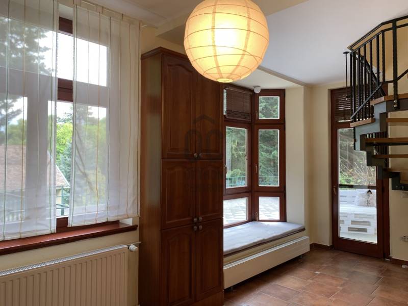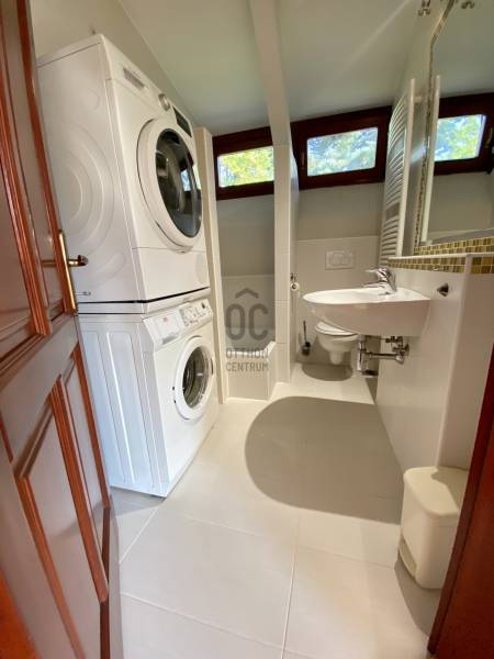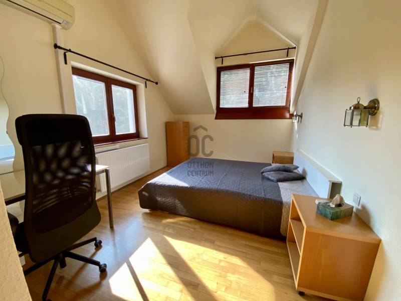 A 12. kerületben Zugligetben kínálunk bérletre egy 141 nm-es, 5 szobás 3 szintes, hatalmas panorámás teraszos (80nm) , felújított lakást,egy 4 lakásos társasházban.Az ingatlan állapota kiváló, világos és tágas terekkel rendelkezik, így minden korosztály számára tökéletes otthon lehet.-A fűtés hőszivattyús, a klíma pedig a nyári melegben biztosítja a kellemes hőmérsékletet. Az ingatlan egy gyönyörű zöld cserépkályhával is rendelkezik, így a hidegebb estéken is élvezheti a meghitt hangulatot.-Az épület csendes környezetben található, így garantált a nyugodt pihenés és a kellemes kikapcsolódás. A hegyvidéki ingatlanokra jellemzően a környék is fantasztikus adottságokkal rendelkezik.-Az étkezőkonyhás nappaliból a földszinten közvetlenül elérhető az óriási intim terasz, mely kertkapcsolatos.-A konyha gépekkel, felszerelt: . Elektromos főzőlap, és sütő, mosogatógép, hűtő fagyasztóval, mikro áll rendelkezésre.-Az első és a 2. szinteken található 3 szoba, dolgozósarok, félszoba kellemes életteret biztosítva egy több tagú családnak is.-Az emeleten 2 fürdőszoba van: az egyik kádas, bidével, wc-vel, a másik épített zuhanyzós, szintén wc-vel.- Az ablakok szúnyoghálóval felszereltek.-Az udvaron két kocsi parkolhat egy fedett beálló alatt.-Megközelítése gépkocsival egy aszfaltozott szolgalmi úton, vagy gyalogosan egy soklépcsős utcán át történik, melyen legyalogolva 3 perc a buszmegálló.-Közös költség 25000 HUFA bérleti díj Euróban fizetendő.3 havi kaució szükséges.A lakásban dohányozni nem lehet és kisállat sem tartható.Kérdésekkel és megtekintéssel kapcsolatban várom jelentkezését.