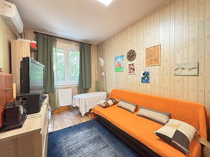 Békásmegyer Hegy felőli oldalán ELADÓ egy 74 nm-es, 3 szobás JÓ ÁLLAPOTÚ, ERKÉLYES lakás egy 4 emeletes társasház, 1. emeletén. A lakásban minden adott ahhoz, hogy kényelmes, modern otthonra találj! A szobák laminált parkettásak, az étkező linóleummal, a konyha és a vizes helyiségek pedig modern járólappal burkoltak, így egyszerre mutatósak és tartósak. A falak simára festettek, a bal oldali hátsó szoba tapétás, ami külön hangulatot ad neki. Az étkező tágas, ideális helyet kínál a közös étkezéseknek és a családi beszélgetéseknek.A beépített szekrények, a spájz és az étkezőnél található további tárolók rengeteg helyet kínálnak minden apróság, konyhai eszköz és háztartási tárgy számára.A lakás műszakilag is remek állapotban van: a villanyvezetékek felújítva és 60 amperre bővítve lettek, korszerű elektromos boxszal, így minden modern igényt kényelmesen kiszolgál.Az otthon biztonságát 12 ponton záródó bejárati ajtó garantálja. Továbbá a belső nyílászárók is megújultak, az ablakok korszerű, dupla thermo üvegesek, a fűtésről pedig új radiátorok gondoskodnak, mindegyik egyedi mérővel és szabályzóval ellátva. A két hátsó szobában klíma gondoskodik a kellemes hőmérsékletről a nyári hónapokban.Az ingatlanhoz tartozik egy SAJÁT tároló is. Ez a lakás tökéletes választás mindazoknak, akik egy jól elrendezett, műszakilag felújított, tágas otthont keresnek, ahol a tereket saját ízlésük szerint alakíthatják.Környékről:Közelben minden olyan szolgálatás megtalálható amire szüksége lehet a mindennapokban (kisebb élelmiszer boltok, piac, éttermek, gyógyszertárak). Gyerekes családoknak nagyon ideális hiszen játszóterek, Óvoda, Iskola, Egyetem van a közelben.Tömegközlekedés szempontjából is tökéletes hiszen pár perc sétára található számos buszmegálló, illetve a H5-ös hév.Ha pedig kikapcsolódásra vágyik pár perc sétatávra elérhető a Duna part, ahol számos lehetőség van kikapcsolódni, sétálni, szórakozni.PARKOLÁS A HÁZ ELŐTT ÉS KÖRNYÉKÉN INGYENES.FINANSZÍROZÁS:Banki finanszírozással is megvásárolható, melyben irodánk ingyenes tanácsadással áll rendelkezésükre! Az ingatlan Otthon Start hitellel is megvásárolható.VEVŐINK RÉSZÉRE A KÖZVETÍTÉS DÍJTALAN!A beépített bútorzat a vételár részét képezi.A hirdetésben szereplő adatok tájékoztató jellegűek.