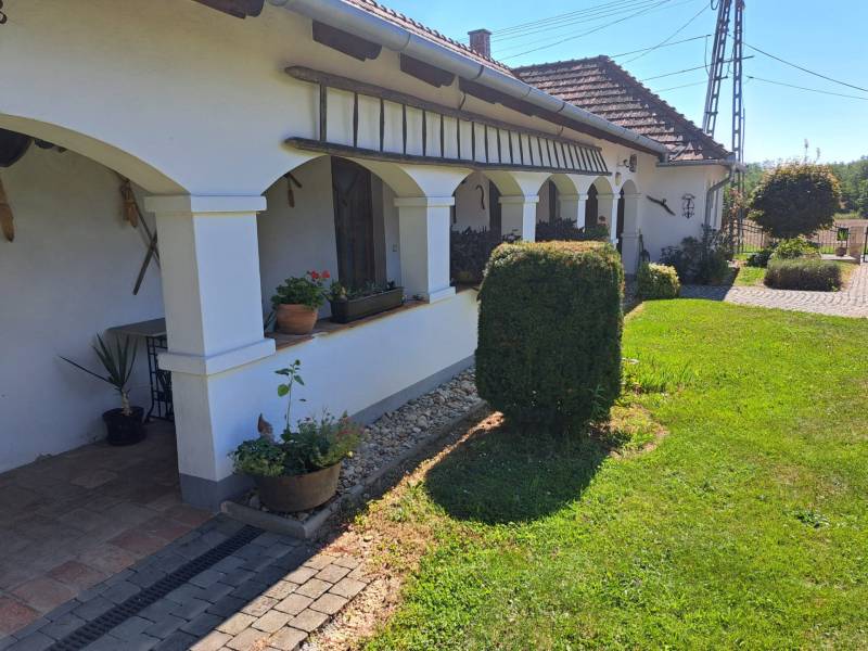 Körmendtől 13 km-re Döröskén, vegyes falazatú tégla és vályog családi ház 1 km-re a Döröskei tótól eladó! A ház egyszintes, melynek lakóterében 3 darab külön nyíló hálószoba, konyha mely étkezésre is alkalmas, egy zuhanyzóval és káddal ellátott fürdőszoba, valamint egy külön helyiségben található toalett lett kialakítva. Nyílászárói hőszigetelt műanyagok. Fűtése gáz központi fűtés. Csatorna nincsen a faluban, zárt derítős. A telek 2500 nm.A házzal egybeépülve kialakítás került egy külön bejáratú úgynevezett Party helyiség , ahol a család, barátok, ismerősök együtt ünnepelhetik a feledhetetlen pillanatokat, legyen szó akár egy kerti buliról, születésnapról, vagy egyéb összejövetelről.A házhoz tartozik továbbá egy zárt műhely rész, amely minden kézi szerszámokkal felszerelt amelyek az esetleges javításokhoz és a ház időnkénti karbantartásához szükségesek. Továbbá fedett kocsibeálló , illetve utánfutó- vagy egyéb kerti gépek tárolására alkalmas szintén fedett tároló rész található az ingatlanban. Az ingatlan vételára tartalmazza a ház teljes berendezését, bútorokkal, gépekkel és egyéb berendezésekkel, felszerelésekkel együtt. Új tulajdonosa azonnal beköltözhet új otthonába, mely már berendezve várja lakóját, megkímélve őt a költözés minden egyéb fáradalmától. A ház 2003-ban teljes körű átalakításon és bővítésen esett át. A felújítás kiterjedt: a teljesen új vízhálózatra, villanyrendszerre, fűtés korszerűsítés kiépítésére! Új gázkazán, és új radiátorok lettek beszerelve! A ház teljes tetőszerkezete ki lett cserélve. Az építkezés teljes folyamatáról fényképek lettek készítve, jelenlegi tulajdonosa kérésre megmutatja őket! Mivel a ház falazata vastag, nyáron gyakorlatilag klímaként funkcionál, nincsen szükség klíma berendezések beszerelésére! A kert gyönyörűen van karbantartva, parkosítva, örökzöld növényekkel, minden évszakban nyíló virágokkal, számtalan gyümölcsfákkal, konyha kerttel. A kert elülső részén egy fedett kiülős fa pavilon, kerti kút padokkal. A telek hátsó részében lehetőség van egy nagyobb méretű medence felállítására, mely körül teljesen térkövesített, ahol egy kis külön álló fa házikóban lehet tárolni a medencéhez szükséges kellékeket. Az egész telek zárt, körbekerített. A telek végén lehetőség van elvonulásokra, meditációra az árnyékot és hangulatot adó fákkal körülvett árnyas és nyugodt erdős részen. Bográcsozó, grillsütő minden meg van oldva! Sőt a tornác fedett részére kiülve, akár reggelizés közben vagy akár az esti meghitt beszélgetések közben a csend, béke, meghitt együttlét 5 csillagos otthont varázsol az otthonából.Kérésére további képeket is tudok küldeni az ingatlanról! Az ingatlan tehermentes, tulajdoni viszonyok rendezettek. A környék csendes és biztonságos, könnyen megközelíthető, ami lehetővé teszi, hogy valóban otthon érezze magát.Bármilyen kérdése van az ingatlannal vagy a vásárlási folyamattal kapcsolatban, megszeretné tekinteni, keressen bizalommal!Ügyfeleinket ingyenes szakszerű tanácsadással látjuk el, bank-semleges hitel-ügyintézésben segítjük, illetve leszervezzük a teljes adás-vételi folyamatot!
