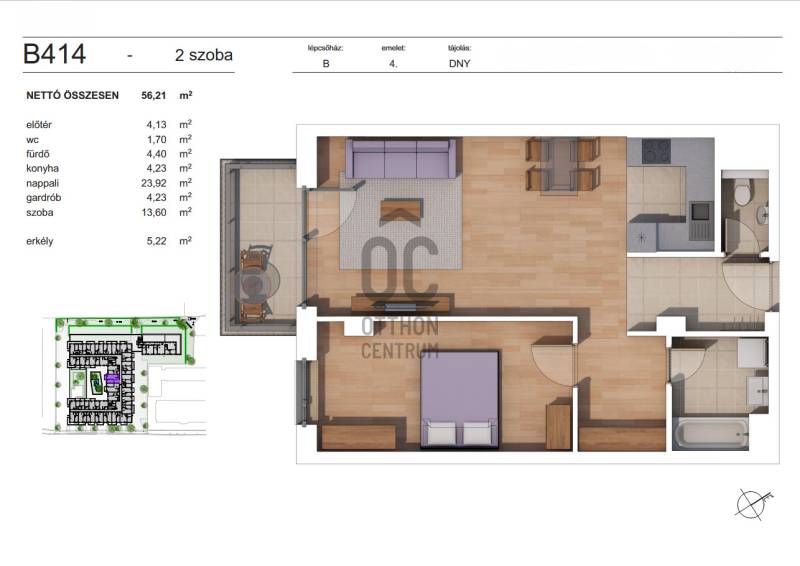 Nettó alapterület: 56,21 m2 + 5,22 m2 erkély.Projekt bemutatásaEladó lakások Zugló szívében! A modern, világos, élhető lakások minden igényt kielégítenek.A belváros percek alatt elérhető, mind autóval, mind tömegközlekedéssel.Az épület különleges homlokzatának köszönhetően kertes lakások is elérhetők, az épületek aljában pedig üzlethelyiségek kerülnek kialakításra.FŐBB JELLEMZŐK:- korszerű épület, kiépített kamerarendszer- kiváló elhelyezkedés: az Erzsébet Palace Zugló központjában található, ahol minden kényelmi szolgáltatás könnyen elérhető.- napfényes lakások: minden lakás benapozott, így természetes fényben fürdőzhet. - kiváló közlekedés: szuper tömegközlekedési lehetőségek állnak rendelkezésre, hogy bárhová könnyedén eljuthasson. - széles körű lakáskínálat: a modern kialakítású lakások nappali+1 szobás, illetve nappali+2 szobás elrendezésben érhetők el. Néhány földszinti lakás kertkapcsolattal is rendelkezik, automata öntözőberendezéssel. - üzlethelyiségek: a földszinten számos üzlethelyiség kap helyet, hogy minden szükséges szolgáltatás a közelben legyen. - parkolási lehetőségek: belső és külső parkolók biztosítják az autók kényelmes és biztonságos elhelyezését. - parkosított környezet: a belső udvar gondosan kialakított, növényekkel és fákkal díszített zöld oázis, amely nyugalmat és kikapcsolódást nyújt. - belső bejáratok: a főbejáratok a belső udvarról nyílnak, biztosítva a lakók privát szféráját és biztonságát. Főbb műszaki tartalom:- energiatakarékos, környezetbarát mennyezeti hűtő-fűtő rendszer- egyedi, modern burkolat -és szaniterválaszték- igény szerint belső design tervezés- okos rendszer- garázs és tároló különböző méretekben - elektromosautó-töltési lehetőségA KÖRNYÉKBelvárosi ellátottság, külvárosi nyugalom.- Kolozsvár utcai piac 400 méter, sportpálya 500 méter, cukrászda, Tesco 200 méter- kávézó, pékség, fodrászat, masszázs, kozmetika szolárium a ház előtt közvetlenül- 100 méterre busz (5, 973, 973A) és villamosmegálló (62, 62A, 69)- Városliget 12 perc 5-ös busszal- Bosnyák téri piac 12 perc busszal (124, 125, 125B)Ne hagyja ki ezt a kivételes lehetőséget, hogy egy ilyen exkluzív lakóparkban éljen! Az Erzsébet Palace lakásai tökéletes otthont nyújtanak mindenkinek, aki értékeli a kényelmet, a modern dizájnt és a kiváló elhelyezkedést. Érdeklődjön most, és találja meg itt álmai otthonát!Tervezett átadás: 2025. III. negyedévSzakaszos fizetési ütemezéssel! Garázs és tároló vásárolható!- garázs: normál 6 MFt, nagy 9 MFt, csökkentett 5 MFt- tároló: 5 m2 -nél kisebb: 950 000 Ft/m2, 5m2-nél nagyobb: 900 000 Ft/m2