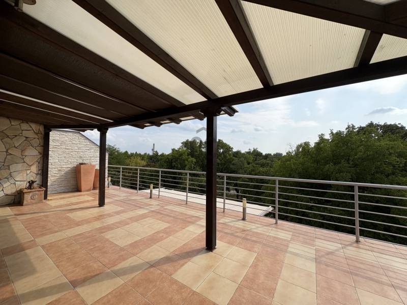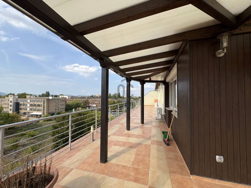 Fedezze fel ezt a különleges tetőterasszal rendelkező lakást a Népliget parkja mellett!A 80 m2-es lakás egy csodaszép nagy, ugyancsak 80 m2-es terasszal rendelkezik, ami a zöld parkra néz. Kinti vízcsappal és tusolóval is ellátott, ami igazi felüdülés a forró nyári napokra. A lakás egy külső szigetelést is kapott, ami a fűtés-szempontjából nagy előnyt jelent. A nappaliba, az előtérbe és a szobákba is egyedi bambusz parketta került, ami hibátlan állapotú. Magas minőségű beépített gépesített konyhabútor található a konyhában. Innen egy kisebb kamra nyílik, ami egy teljes polcrendszerrel beépíthető. A szobákban hűtő-fűtő klímák gondoskodnak az otthon kényelméről. Az előtérben egy teljes hosszú tükörajtós beépített szekrény található, ahová az egész család ruhatára belefér. A szekrénnyel szemben lévő üvegfal pedig egy egyedi dizájnt és világosságot kölcsönöz a lakásnak. A vételár részét képezi egy saját kocsibeálló a társasház alatti teremgarázsban. A házhoz tartozik saját kert is, ahol kicsitől nagyig mindenki megtalálja a kedvére való elfoglaltságot. A parkból átjár egy mókus, úgy hogy garantált a jó hangulat:)Az ingatlan per és tehermentes, azonnal költözhető.Jöjjön el és nézze meg álmai otthonát!