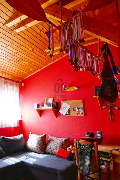 CSOBÁNKA csendes zsák utcájában, panorámás családi ház, egyik lakása (ikerház) része eladóA családi ház ügyvéd általi megosztással két külön lakásra osztható- 2005-ben épült- MEDITERRÁN hangulatú, otthonos - szigetelt-tégla építésű- belső kétszintes, tetőtéri-keleti fekvésű- bruttó 154,28 nm-40 nm tágas nappali, kandallóval, bel magassága 4 méter , látszó gerendákkal , különleges hangulattal- hegyekre néző , panorámás nappali, nagy ablak felületekkel, terasszal- világos tágas konyha étkezővel, egyedileg gyártott fa bútorokkal - három nagy szoba - nagy dupla mosdós , sarokkádas fürdőszoba , épített bútorral - gardrób szoba- fűtés gázcirkóval , valamint a nappaliban kandallóval lehetséges- egyéni megrendelésre gyártott fa nyílászárók, dupla üveggel- összközműves, saját mérőórákkal- önálló garázs a telek első részében, mely egy nagyobb, vagy két kisebb autó beállására alkalmas ( tégla építésű, jól szigetelt- saját önálló kert is tartozik a lakáshoz kb 200 nm- teraszos kialakítású a kert,- fedett terasz - az utca aszfaltos, a lakáshoz díszkő burkolaton keresztül sétálhatunk fel.- a kert rendezett , gyönyörű , fák , örökzöldek , cserjék , bokrok sokasága , valamint virágzó növények színesítik Tömegközlekedés, óvoda iskola, bevásárlási lehetőség séta távolságban. Sportolási lehetőség , túrázás, kerékpározás , kirándulás , kedvelt túra útvonalakon .