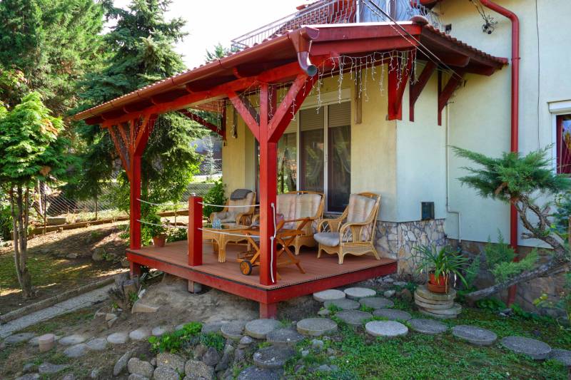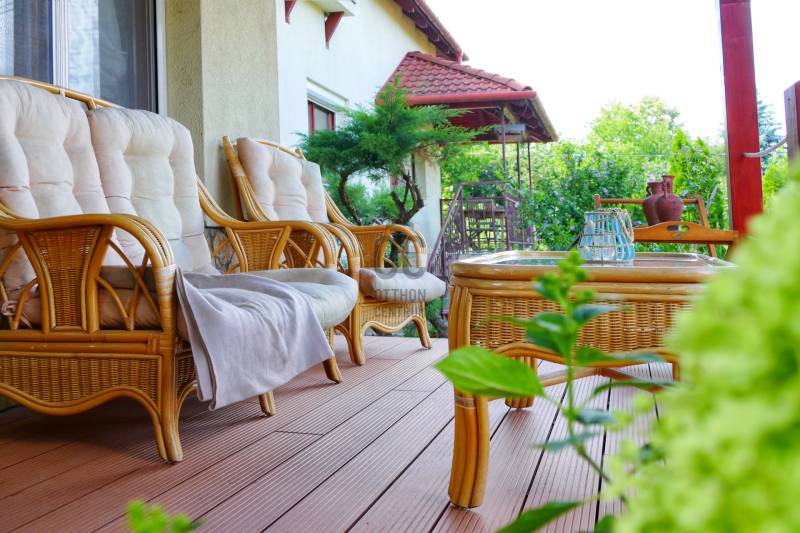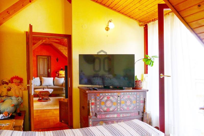 CSOBÁNKA szívében csendes utcában, panorámás kétgenerációs CSALÁDI HÁZ eladó!TELEK:- 721 nm -Keleti fekvésű -zsákutcában-panorámás- rendezett, ápolt -teraszos kialakítású-teraszok terméskövekkel tagolt, sziklakerti növényekkel díszített részekből áll.- körbe kerített- elektromos kapubeállás- díszkő burkolat a kaputól a ház bejáratáig- nyitott beálló - A telek adottságához igazodva, a kert első részében helyezkedik el.- jól szigetelt - téglából épült- a mennyezet felett ( föld) zöld tető,CSALÁDI HÁZ: - két generáció együtt élésére kiválóan alkalmas-külön bejáratú két tágas lakás- összközműves- mind a két lakás külön mérőórákkal rendelkezik-Az első házrész 1995-ben épült, a második házrész 2005-ben-együtt lett szigetelve a ház és színezve- a teljes tetőszerkezet 2005 -ben együtt épült.-cserép tető- klíma kiállás kiépítve1 LAKÁS:- 1995-ben épült - 93,4 nm- tégla építésű- a lakás alatt egy garázs lett építve, mely egy nagy vagy két kisebb autó tárolására alkalmas- a lakásba lépcsőn keresztül jutunk fel- bejárat előtt egy fedett terasz - tágas amerikai konyhás nappali- két nagy méretű keleti fekvésű szoba- kisebb lakószoba- 2 db fürdőszoba WC-vel- és egy háztartási helység lett kialakítva- fa nyílászárók - fűtés gázcirkóval, vagy vegyes tüzelésű kazánnal lehetséges2. lakás- 2005-ben épült- mediterrán jellegű, - 154,3 nm- tégla építésű- szigetelt- egyedi fa nyílászárók, dupla üveggel- belső kétszintes- keleti fekvésű- otthonos- tágas terek jellemzik a lakóteret- belmagassága 270 cm szinte minden helyiségben, a nappaliban 4 méteres belmagasság- fürdőszobákban dupla épített mosdó, sarokkád,- nappaliban kandalló- gázcirkó fűtés- nappaliból és a konyhából csodálatos kilátás Csobánkára és a hegyekre.A lakások külön- külön is eladóak, ügyvédi megosztással.Mind a két lakáshoz, garázs, önálló telek rész is tartozikIskola, óvoda, sportpálya, bevásárlási lehetőség , tömegközlekedés séta távolságban.