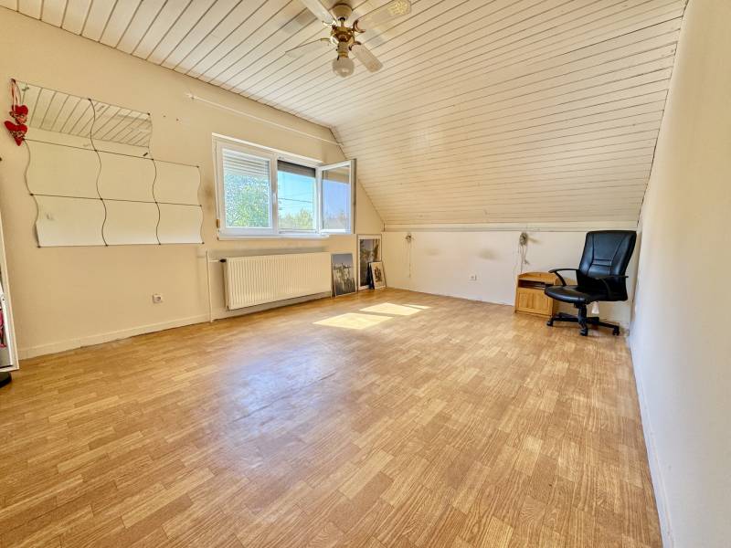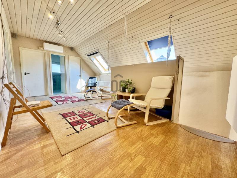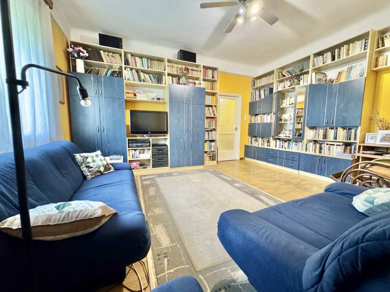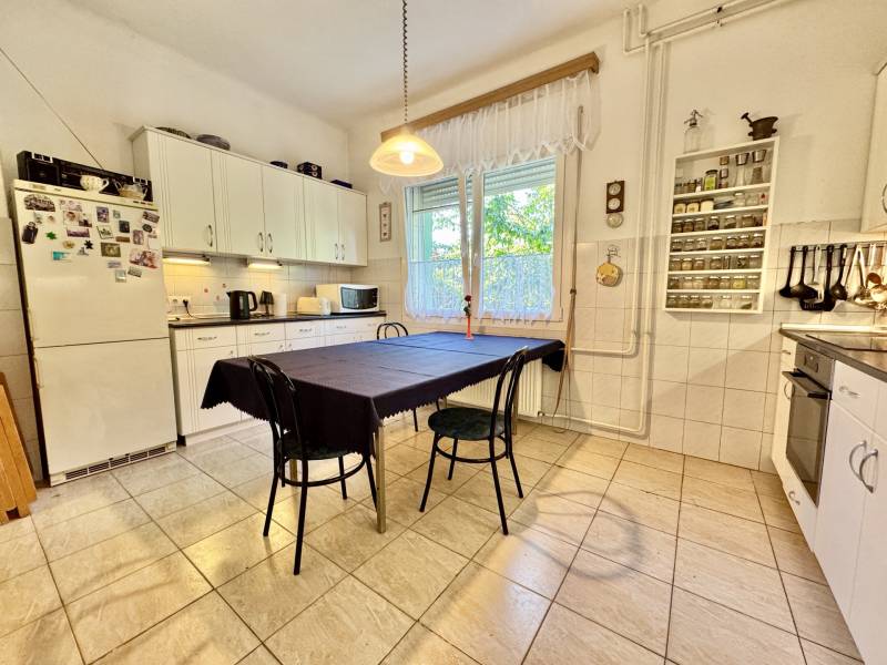 Egy elismert építész saját családjának álmodta meg.Nem akármilyen házról van szó: olyan szakember otthonáról, aki a kerületben számos lakóház és lakás terveit jegyzi. Amikor egy építész magának tervez, nem köt kompromisszumot sem anyagban, sem szerkezetben – ez a ház ennek a gondosságnak a kézzel fogható eredménye.A jelenlegi elrendezés szerint 6 szoba áll rendelkezésre ,de a terek kialakításának köszönhetően könnyedén bővíthető akár 9 szobává is .A téglaépítésű, zsindelytetős ház két szintje ideális választás kétgenerációs együttélésre: külön lakrészek, mégis egy közös otthon. A nagyszülők, szülők és gyerekek úgy élhetnek együtt, hogy mindenkinek megmarad a saját élettere.A belső terek világosak és barátságosak: a nagy könyvespolcos nappali igazi központja a háznak, a szobák napfényesek és jól bútorozhatók. A két szinten külön konyha és több fürdőszoba is helyet kapott, így a családtagok kényelmesen, egymást nem zavarva élhetik a mindennapokat.Műszaki tartalom:•Gáz cirkó fűtés puffer tartállyal kombinálva•Alternatív fűtés vegyes tüzelésű kazánnal•Réz villanyvezetékek az emeleti szinten•Ipari áram a garázsban – műhelyhez, gépekhez vagy elektromos autó töltéséhez ideális•Két klíma a nyári komfortértAz udvar térkövezett, a dupla garázsban két autó fér el, a szabadban pedig további kettő parkolhat. A kert nemcsak tágas, de igazán szerethető is: virágos ablakok, zöld fák, bokrok, és egy öreg diófa, amely árnyékot ad a nyári napokon, s köré gyűjti a családot, ahogy egy igazi otthonhoz illik. A fedett kerti konyha hosszú asztallal és sütővel pedig tökéletes helyszíne a grilleknek és baráti összejöveteleknek.A 1009 m²-es telek szabad teret ad a fantáziának – játszótér, konyhakert, medence, vagy egyszerűen csak egy árnyékos pihenőkert is könnyedén kialakítható rajta.Ez a ház többről szól, mint falakról és tetőről. Ez egy hely, ahol a családi történetek gyökeret vernek – ahogy a kert diófája is teszi, évről évre erősebben.