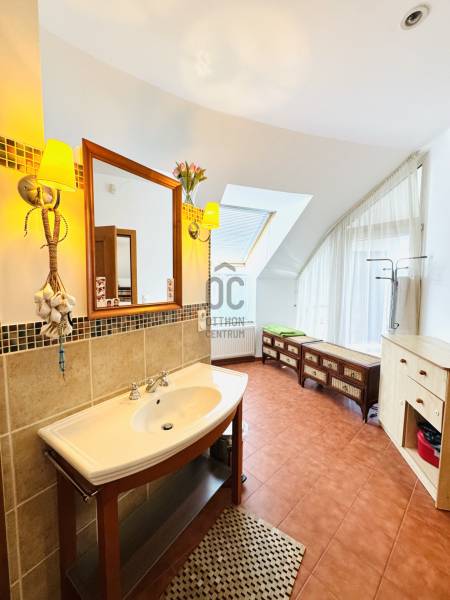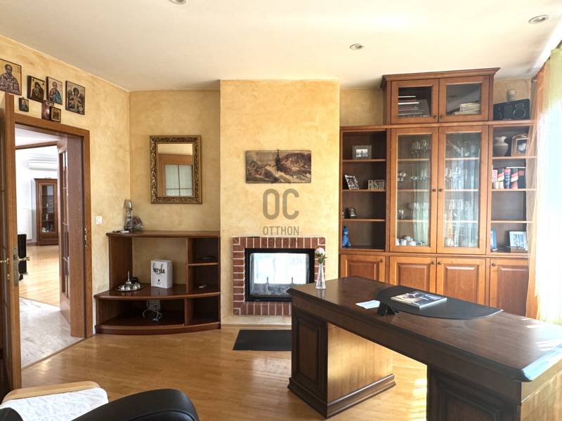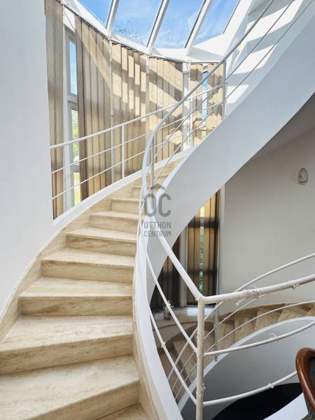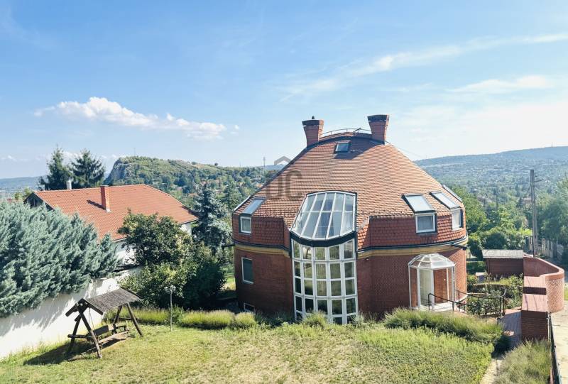 Képzelje el, hogy minden reggel a természet ölelésében, a város zaja felett ébred, miközben körülöleli a budaörsi hegyek látványa. Ez a birtok nem csupán egy ingatlan – egy élettér, ahol a nyugalom és a modern luxus találkozik.A főépület – a nagyvonalú családi otthon (485 m²)Egy különleges, Dr. Kuba Gellért által tervezett, ökologikus villa, amelyet úgy álmodtak meg, hogy hosszú távon kényelmet, fenntarthatóságot és eleganciát nyújtson.Kikapcsolódás itthon: belső medence és szauna gondoskodik a pihenésről.Energiatudatos megoldások:napkollektor, frisslevegő-ellátás, gravitációs légfűtés – mindez alacsony rezsit és tiszta levegőt biztosít.Tágas terek, fényárban: a hatalmas nappaliban a kandalló melege és a körpanoráma egyszerre varázsolja otthonossá az estéket.Privát szféra: 5 különálló hálószoba, mind saját fürdőszobával és gardróbbal.Autók szerelmeseinek: 4-5 férőhelyes teremgarázs, fordítókoronggal a könnyed kiállásért.A vendégház – egy kis külön világ (100 m²)A birtok része egy barátságos, önálló vendégház is, amely ideális szülők, felnőtt gyermekek vagy vendégek számára.* Világos, amerikai konyhás nappali* Kényelmes hálószoba és fürdő* Panorámás terasz nyári konyhával – tökéletes hely baráti összejövetelekhez. Miért különleges ez a birtok?* Mert itt valóban két házat kap egy áráért – többgenerációs együttélésre, vendégháznak vagy akár munkára is ideális.* Mert a tervezés és a kivitelezés során a környezettudatosság és az egészséges élettér volt az elsődleges szempont.* Mert a csend, a panoráma és a természetközelség olyan életminőséget kínál, amit kevés budapesti környéki ingatlan tud nyújtani.Ez az otthon nem mindenkinek szól. De ha Ön értékeli az egyediséget**, a fenntartható megoldásokat, és szeretne egy saját világot magának és családjának a város szomszédságában, akkor ez az ingatlan pont Önre vár.