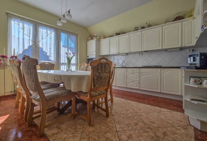 Egy különleges lehetőséget kínálunk nagycsaládosok vagy összeköltözők számára, akik álmaik otthonát keresik a gyönyörű Sopronban, a csendes és zöld Egeredi dombon. Az ingatlan alapterülete 385 négyzetméter, míg a telek mérete 459 négyzetméter és egy sarok telken helyezkedik el így két utca felől is megközelíthető.A ház három szintes, három különálló lakással, melyek zárt lépcsőházból, külön bejárattal klözelíthetőek meg.A földszinten , amely 130 m2 található- konyha-étkezővel- kamra- kazánház- mosókonyha- mosdó- üzlethelyiség, mely külön bejárattal az utcafrontról közelíthető meg. Az I. emeleten, amely 130 m2 található- 4 tágas szoba- konyha étkezővel- fürdőszoba+ wc- különálló wc- spájz- mosókonyha A II. emelet ami 125 m2 található- tágas nappali- 2 szoba- konyha étkezővel- spájz- fürdőszoba- külön wc - mosókonyha- erkély- Téglaépítésű ház, vastag 40 cm falakkal és 12 cm szigeteléssel.- Műanyag ablakok 3 rétegű üveggel, alu redőnnyel, szúnyoghálóval 5 éve lettek cserélve.- A ház fűtését kondenzációs gázkazán és vegyestüzelésű kazán biztosítja.- A ház jól megközelíthető központi helyen van, mégis csendes nyugodt környezet.A házban több generáció is zavartalanul tud élni, az önálló bejáratoknak köszönhetően.Alkalmas lehet akár összeköltöző családoknak, apartmannak vagy panziónak is.Az udvaron található 3 garázs is, melyek közül az egyik autószerelő műhely beépített emelővel.Az utcán a parkolás aház előtt ingyenes, akár több autó is elfér.Ha felkeltettem érdeklődését keressen bizalommal, további információért.Hitelre van szüksége?Az Otthon Centrum az ország egyik legnagyobb és legmegbízhatóbb hitelközvetítőjeként, teljes körű és díjmentes hitelügyintézéssel, biztosításkötéssel áll rendelkezésére!Kérje személyre szabott ajánlatunkat Kollégáinktól!Lakásbiztosításban is otthon vagyunk!Ingatlan és biztosítás egy helyen! Szakértő kollégáink segítenek megtalálni a legmegfelelőbb ajánlatot.