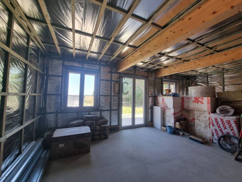 Fiatal felnőttek, figyelem! Most egy igazán különleges lehetőséget kínálunk számodra, amely tökéletesen illeszkedik a modern életstílushoz és a jövőbeli elképzeléseidhez. Somogy vármegye szívében, Ádándon található ez a hatályos építési engedéllyel rendelkező félkész könnyűszerkezetes egyszintes családi ház, amelynek hasznos alapterülete 112 nm, és egy hatalmas 6556 nm-es telek tartozik hozzá.A ház jelenlegi készültségi foka:- a tetőn minőségi Terran betoncserép és egy napelem rendszer található- 3 rétegű üvegezéssel ellátott 7 légkamrás műanyag kívül színezett nyílászárók szúnyoghálóval és redőnnyel szerelve - 10 cm vastag aljzat szigetelés, + 15cm főfalszigetelés+ 15cm homlokzati szigetelés- az aljzatképzés a fürdőszobák kivételével megvalósult- villamoshálózat alap szerelése előkészítve- belső párazárás és gipszkartonozás részben megvalósult- a teljes faszerkezet törvényben előírt vegyszeres védelemmel ellátva- víz, villany, csatorna bevezetve- tetőtér igény szerint tervmódosítással beépíthető Itt nemcsak egy otthont vásárolhatsz, hanem egy lehetőséget is, hogy álmaid otthonát valósítsd meg. A házban öt szoba, két fürdőszoba vár rád, amelyeket könnyedén átalakíthatsz az igényeid szerint. Az amerikai konyhás nappali különösen vonzó lehet, hiszen itt a barátaiddal és családoddal együtt töltheted a szabadidőt. Képzeld el, ahogy az egyedi tervezésű otthonodban minden részlet a te ízlésedet tükrözi! A környék csendes és biztonságos, ideális helyszín a pihenésre és a feltöltődésre. A falusi Csok támogatás lehetősége pedig még vonzóbbá teszi ezt az ingatlant, hiszen így könnyebben valósíthatod meg álmaid otthonát. A bővítési lehetőség pedig lehetőséget ad arra, hogy a jövőben tovább növeld az ingatlan értékét, hiszen a telek mérete lehetővé teszi, hogy újabb épületeket, garázsokat vagy akár egy szép kertet alakíts ki. A közlekedés szempontjából is kedvező helyen fekszik az ingatlan. Az autóval könnyedén megközelíthető főbb utak és a közeli buszmegállók révén Siófok és a Balaton part is gyorsan elérhető. Ne hagyd ki ezt a remek lehetőséget, hogy egy új, befejezésre váró ház tulajdonosa légy, ahol a saját ízlésed és kreativitásod érvényesülhet! Ha bármilyen kérdésed van, vagy szeretnéd megtekinteni az ingatlant, ne habozz keresni bizalommal. Az álmaid otthona csak egy lépésnyire van!