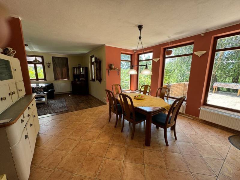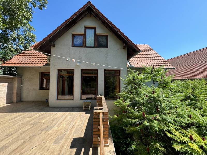 Amennyiben olyan OTTHONRA vágyik ahol a napi \"mókuskerékből\" kiszeretne lépni családjával együtt, csendre és nyugalomra vágyik, akkor ez az ÖN otthona! Kiváló állapotú, 197.12 nm alapterületű, nappali + 4 szobás, 2 fürdőszobás, világos és modern ház, 2 állásos garázzsal, pincével, eladó a Fejér vármegyei Bakonykútiban Az ingatlan egy 1592 nm nagyságú, rendezett telken található, melyből gyönyörű panoráma nyílik a környékre. Az otthon tágas nappalival rendelkezik, melyhez egy 54.78 nm méretű terasz is tartozik, ahol a család és barátok együtt élvezhetik a nyári estéket. A beépített bútorok és szekrények kényelmes és praktikus tárolást biztosítanak, az integrált szúnyogháló pedig biztosítja az éjszakai zavartalan pihenést. A tehermentes ingatlanban biztonsági ajtó található, így a család és az otthonuk mindig biztonságban érezheti magát. Jólfelszerelt konyhával rendelkező otthon, KLIMÁVAL is felszerelt. A ház alatt található a méretes pince és a 2 férőhelyes garázs is, így a család autói is biztonságban parkolhatnak. A környék csendes és rendezett, ideális választás családosok számára. Az autóval közlekedők számára könnyen megközelíthető, de a tömegközlekedési lehetőség is adott.A ház beton sávalapra épült, a külső térelhatároló falak POROTHERM 38-as falazóelem a belső teherhordó fal, POROTHERM 30-as falazóelemből, míg a válaszfalak 10cm-es válaszfallapokból készült. A födém POROTHERM födém előre gyártott áthidalókkal készült.A tetőszerkezet az előírásoknak megfelelően előkészítve lett beépítve, cserép héjalással fedve.Nyílászárók, a homlokzati falon korszerű, hőszigetelt, fa szerkezetű, egyedi ablakok, üvegfalak, illetve ajtók vannak, a belső nyílászárók hagyományos faajtók.A gázkazánnak SCHIEDEL (SIH 16) kémény, a kandalónál, amely tartalék kémény szerepét is betölti, falazott 20/14 cm kürtőméretben készült.A ház hőellátását és melegvízellátását a 24 Kw-os gázüzemű kombinált kazán biztosítja. A hőellátás radiátorokon keresztül történik.A szobák parketta burkolást kaptak, míg a többi helyiség kerámia burkolással lettek burkolva. Az idén még igénybe vehető CSALÁDTÁMOGATÁSOK:- FIX 3%-os hitel 50 millióig- CSOK+- 3%-os CSOK HITEL- 5%-os Áfa visszatérítés-ILLETÉKMENTESSÉG Ha szeretne egy igazi családi otthont, amely minden igényét kielégíti, akkor ez az ingatlan az Ön számára tökéletes választás. Keressen minket bizalommal, ha kérdése van az ingatlannal kapcsolatban!Vidék, csendes, zöld, terasz, szoba, ház, kert