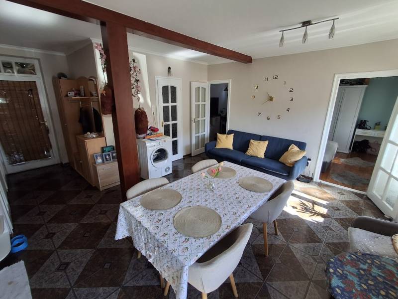 Cegléden, csendes kertvárosi környezetben eladó egy 84,6 m²-es földszinti, bútorozott lakás, amely 2000-ben épült, és praktikus elrendezésének köszönhetően akár két generáció együttélésére is kiváló választás.- A lakás főbb jellemzői:- Nappali + 3 szoba elosztás- Bútorozottan eladó- Gázcirkó fűtés (Baxi kazán) radiátoros hőleadással, 1 szobában konvektoros fűtéssel- Fa, hőszigetelt nyílászárók- parkettás szobák- konyha - étkező - nappali hidegburkolatot kapott- Homlokzat szigetelve- Összközműves ingatlanA jelenlegi kialakítás szerint a lakás két külön bejáratú részre van osztva, külön mérőórákkal (villany almérővel), így ideális lehet befektetésnek, kiadásra, vagy két család kényelmes együttélésére is.A környék nyugodt, kertvárosi jellegű, mégis jól megközelíthető, a mindennapi élethez szükséges szolgáltatások könnyen elérhetők.Amennyiben felkeltette érdeklődését, kérem keressen bizalommal, és nézzük meg együtt ezt a sok lehetőséget rejtő, bútorozott otthont!A hirdetésben szereplő információk a megbízótól kapott adatok alapján készültek, pontosságukért felelősséget nem vállalunk! Irodánkban teljes körű ügyintézéssel, ingyenes , bankfüggetlen hiteltanácsadással várjuk!Amennyiben felkeltette érdeklődését a lakás, kérem, keressen bizalommal!