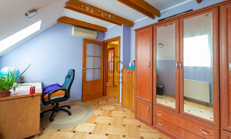 KITŰNŐ AJÁNLAT SOLYMÁROM!Tisztelt Érdeklődő,egy igazán különleges ingatlanra hívom fel figyelmét. Két lakásos családi ház megnevezésű,de a mi esetünkben a két lakás nem egymás felett hanem egymás mellett helyezkedik el.Közös bejáraton kívül teljesen elkülönülnek egymástól. Így inkább családi ház jellegű.Két épület külön mérőórákkal rendelkezik.Az ajánlatunkban szereplő ház brutto 240nm-es /a 190 cm feletti 184 nm/.Telek 300 nm.Az ingatlanok ügyvédi megosztással rendelkeznek.2003-ban épült ház az akkor legmagasabb igényeknek megfelelő anyagok felhasználásával. Tulajdonos építész,aki saját használatra építtette az ingatlant,így a magas színvonal garantált.A ház három szintes ,Alagsor-úgy lett tervezve,hogy egy ajtó megnyitásával ,külön bejáratú lakás kialakítható.jelenleg 63.nm fürdővel háztartási helységgel,és egy nagy szobával.Földszint-lépcsőtér,előszoba,konyha,nappali-étkező,66.88nm. Nappali hatalmas üveg felületekkel rendelkezik innen lehet kijutni a teraszra illetve a kertbe.Tetőtér-3 háló,2 fürdőszoba/tusolós ill.kádas/toalett,dolgozó szoba,innen lehet egy falépcsön feljebb jutni ahol egy 20 nm-es közös tér lett kialakítva.Az egyik hálóból nyílik egy 15 nm-es terasz csodás kilátással a környező hegyekre.Müszaki ősszegzés-építés éve,2003,falazat 38-as porotherm téglaszigetelés .közetgyapot 5 cm.es nehéz lépésállóTető-cserép korona fedésFűtés.-Vaillant atmoszférikus gázkazán.Parkettás helységben radiátor,hidegburkolat alatt padlófütés.Redőnyők aluminium hőszigeteltek.Légkondi minden helységben.Ablakok-Indonéz tölgy.Parketta-tölgy illetve kőris intarziás berakásos.Hideg burkolat-Süttői kö polírozott diagonál.Vízlágyító,központi porszívó,riasztó beszerelve.Falakon Svéd textiltapéta!Anna kápolna közelsége miatt,járművekkel is könnyen elérhetünk mindent a környéken.Szonszédok kultúráltak,összeszokott lakóközösség,Közelben erdő,kíváló kiránduló helyekkel!Az ingatlan rugalmasan mutatható,azonnal költözhető,várom megtisztelő hívását ,hétvégén is!