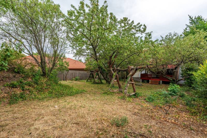 Otthonos családi ház Szentendrén, nagy kerttel - akár két generáció számára is!Lokáció:Az észak-budai agglomeráció kedvelt településén, Szentendrén -Izbégen- épült az ingatlan, gyalogosan, autóval kiválóan megközelíthető. Buszmegálló 2 perces távolságban, üzletek, iskola, óvoda, gyermekorvosi rendelő, gyógyszertár a városrészben elérhetőek.Az ingatlan fő paraméterei:belterületi, kivett lakóház, udvar minősítésű1983-ban épült, 2001-ben bővítésen, felújításon esett át, 2025-ben esztétikai felújítás, illetve hátsó terasz felújítása történttégla építésű135 nm1094 nm telekháromszintes, kialakítása miatt két generációnak is megfelelő választás lehet, több bejárattal rendelkezikalsó szinten szoba, fürdőszoba, kamra, közlekedő kialakítottföldszinten konyha, étkező, szoba, fürdő, közlekedő, folyosó található, elől nagy erkély, hátul kertre néző fedett fa teraszemeleten hálószobák és fürdőszoba nyújt életteret a családnakműanyag nyílászárókgázkazán fűtésösszközműveskülső fedett gépjármű beálló két autó részérekülső borospince 10 nma kert tagolt, a hátsó rész intim, nagy teret nyújt, biztonságos a gyermekek számáranyugodt környezetben helyezkedik elAz ingatlan kényelmes kialakítású terekkel, funkcionális helyiségekkel teszi komfortossá az ott lakók mindennapjait. A szobák világosak, az étkező-nappali szintje kiváló teret nyújt a családi együttléteknek, a konyha szeparált, de mégsem zárt. A külön bejáratok miatt a szuterén és az emeleti szintek önálló életteret nyújthatnak, így két család/különálló családtag számára is ideális választás, de sokgyermekes családoknak is jó döntés lehet.A kert biztonságos, jól gondozható, hangulatos. Hívjon bizalommal, szeretettel várjuk!