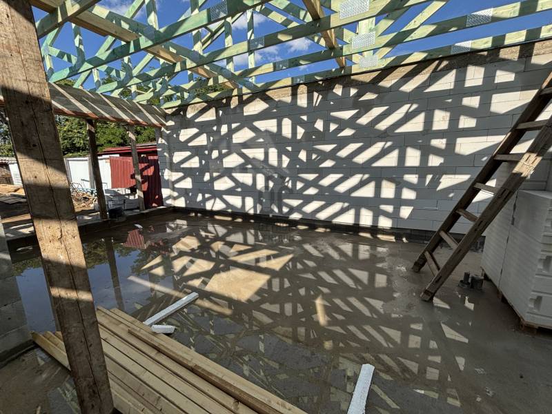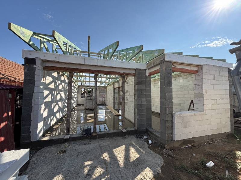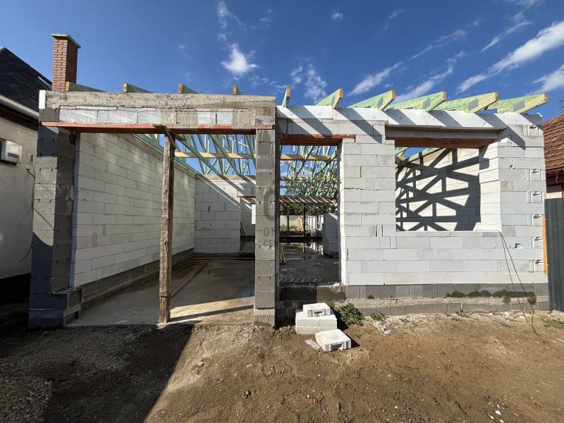 Ez a modern, új építésű családi ház ideális választás azoknak, akik szeretnének nyugodt környezetben élni, miközben mindössze pár percre vannak a belvárostól. A ház jelenleg szerkezetkész állapotban van, a tetőszerkezet készül, így Ön döntheti el a belső elrendezést és a burkolatok stílusát. Főbb jellemzők:- Praktikus elrendezés: 2 hálószoba + nappali-konyha- Fűtés: gázcirkó rendszer, padlófűtéssel- Komfort: előkészített klímaberendezés- Fürdők: 2 fürdőszoba, 2 WC- Terasz és kert: nappaliból nyíló 6 m²-es terasz + 200 m² saját kert- Egy régi kerti kis ház is van a telken, használható tárolás vagy lakhatás céljára, az irányár tartalmazza ennek felújítási költségét!- Parkolás: garázs és ingyenes közterületi parkolási lehetőségLokáció:- Egyetem Műszaki Kara és a Kassai Campus 5 perc sétára- Kiváló infrastruktúra és tömegközlekedési kapcsolatok- Csendes, barátságos környék, mégis a belváros közvetlen közelébenExtra lehetőség: Az ár a szerkezetkész állapotra vonatkozik, ugyanakkor a kivitelező igény esetén vállalja a teljes befejezést is – ennek részleteiről személyesen érdeklődhet.Kinek ajánljuk?- Saját otthonnak, családoknak, fiatal pároknak- Befektetőknek – a közeli egyetemi campusok miatt könnyen kiadható ingatlan