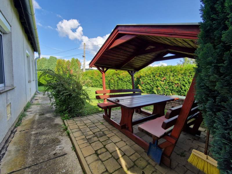 A Zalai-dombság szívében, messze a nagyvárosok nyüzsgő és zűrzavaros világától csodaszép környezetben találhatjuk Bázakerettyét.Mesebeli családi házikó eladó a Zalai dombok közt megbújó, erdőkkel körül ölelt Bázakerettyén.Csendes utcában, zöld környezetben, szépen gondozott 740m2-es saroktelekkel, fedett autóbeállóval, egy fa pavilonnal és grillezővel várja új tulajdonosát ez a kis családi ház.Az 57m2-es ház helyiségei: közlekedő, kerti tároló, kamra, konyha-étkező, fürdőszoba, külön wc, gardrób és két szoba.Az ingatlan 2018-ban, 2022-2024 években felújításokon, korszerűsítéseken esett át. Villanyvezetékek rézre lettek cserélve, melegvízről és a központi fűtésről kombi gázkazán gondoskodik, ehhez vízlágyító berendezés is csatlakoztatva van.Összközműves: víz, villany, gáz, csatorna bekötve.Optikai kábeles internet adott. Modern fa ablakok hő-és hangszigeteltek, redőnnyel, szúnyoghálóval ellátva.A padlózat járólap, laminált padló és parkettával van burkolva.A folyosón, a konyhában, a nappaliban és a hálószobában mennyezeti spotlámpák vannak beépítve.A tető betoncserép fedésű, szigetelt födém és a homlokzati falak is szigetelve vannak hungarocellel.Az ingatlanban található bútorok nagyrésze benne van az árban.A legközelebbi város Nagykanizsa, körülbelül 30 km, a Letenyei határátkelő is csak 15 km.A falunak saját termálstrandja van, túraútvonalak és csodás kirándulóhelyek teszik izgalmassá és közkedveltté a környéket.Az elhelyezkedése és adottságai miatt ajánlom egyedülállóknak, pároknak, fiataloknak, időseknek egyaránt.Az ingatlan 1/1 tulajdonban van, tehermentes. Teljes kifizetést követően szinte azonnal birtokba vehető.Irodánk teljes körű, ingyenes szolgáltatást nyújt kereső ügyfeleinknek.Szakszerű tanácsadással, hitelügyintézéssel, energetikai tanúsítvány elkészítésével és kedvező díjszabású ügyvéddel nyújtunk segítséget.