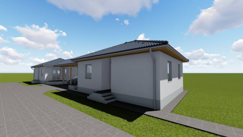 FOGLALHATÓ!Dánszentmiklóson – Budapesttől 50 km-re – eladó egy modern, 66,4 m²-es, 3 hálószobás + nappalis ikerházfél, 400 m² KÜLÖN BEJÁRATÚ telekrésszel! A két épületet csak a garázs köti össze, nincs közös fal, nincs összeépítés, a két lakás teljesen külön megközelíthető, kerítéssel elválasztva.Modern kialakítás – alacsony rezsiköltség – kiváló elosztás. A belső térben: előszoba, közlekedő, 3 külön nyíló szoba, fürdőszoba, külön WC, amerikai konyhás nappali, kertkapcsolatos terasszal.Műszaki tartalom: Leier tégla falazat, 15 cm külső hőszigetelés, Bramac Nova tetőcserép, födémen 25 cm szigetelés, 3 rétegű, 6 légkamrás műanyag nyílászárók, redőnyelőkészítés, 10 kW-os hőszivattyús fűtésrendszer padlófűtéssel, Ariston okosbojler, hidegburkolat 9 500 Ft/m²-ig, melegburkolat 7 500 Ft/m²-ig, szaniterek 450 000 Ft-ig, belső ajtók 90 000 Ft-ig, 20 m² viacolorozott kocsibeálló 5 500 Ft/m²-től, max. 6 m²-ig.Átadás: 2026 második fele.Előnyök: referencia munkák megtekinthetők, foglaló után árgarancia, rugalmas fizetési ütemezés.Elhelyezkedés: Dánszentmiklós az M4-es és M5-ös autópályákról könnyen elérhető, Budapest kb. 30 perc alatt megközelíthető. A telek a 405-ös főúttól 4 km-re található.Kapcsolat: Alitisz Judit – 06 20 400 4009. Hívjon bizalommal, hétvégén is rendelkezésre állok!