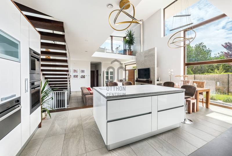 Budaörsön, a Törökugrató szomszédságában eladó ez az extra modern családi ház! Az 5 éve elkészült ház építése során a legmodernebb technológiákat alkalmazták, így a mai kor elvárásainak megfelelő, a környezetbe tökéletesen illeszkedő, ultramodern családi ház lett a végeredmény. - 5 szoba- kivételes hangulatú, kertkapcsolatos nappali- a felső szinten csodálatos panorámával rendelkező napozó terasz, ami akár további lehetőségeket is rejt magában- napelem rendszer- hatamas garázs, hobbiszoba és vendégszoba a garázs szinten.... és még sorolhatnánk! Mindez sétányi távolságra tömegközlekedéstől!!!Kiváló lehetőség családoknak, de idősebb generációnak is!