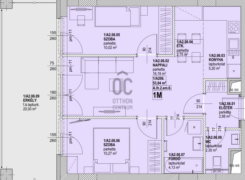 Erkély mérete: 20 m2