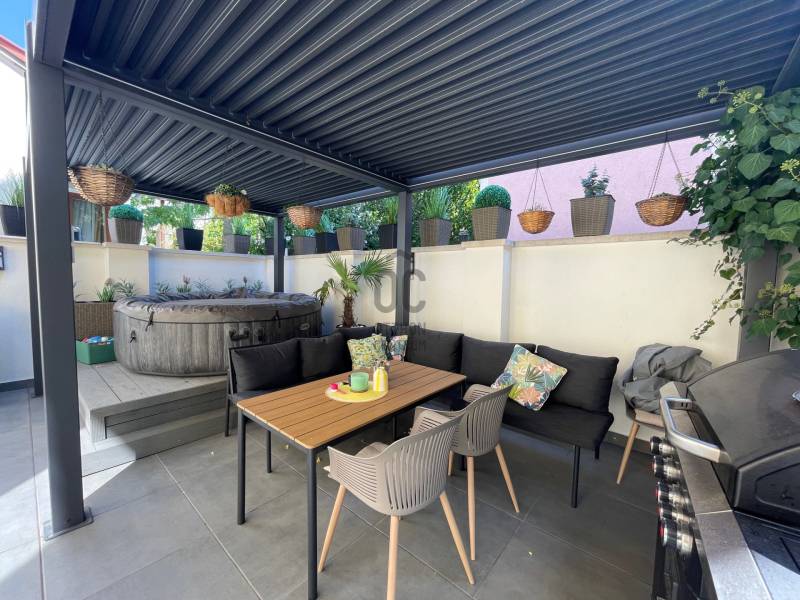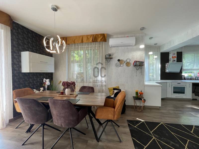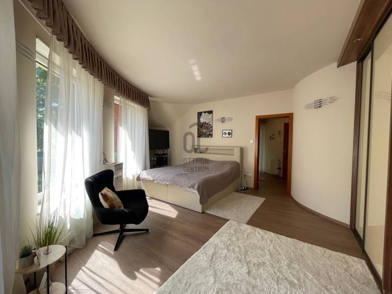 Különleges ajánlat Nagyerdő legkedveltebb részén: Simonyi út mellett elhelyezkedő, bruttó 373 m²-es, önálló családi ház, amelyet a funkciók sokfélesége tesz igazán értékessé. Többgenerációs otthonnak, magánklinikának, irodaháznak vagy cégszékhelynek egyaránt ideális — de aki a Nagyerdő közelségét szereti, családi házként is tökéletes választás. Az elmúlt években a ház korszerűsítése és belső dizájn átalakítása is megtörtént, modern, rendezett, reprezentatív egységet eredményezve.Földszint- Modern nappali–étkező: 35 m²- Gépesített konyha: 8 m²- Gardrób: 5 m²- Előtér, vendég WC- Tágas, részben fedett terasz: 37 m²- Külön bejáratú önálló lakrész: 31 m² (igény szerint könnyen egybenyitható)Tetőtér:- 3 hálószoba: 22 / 19 / 27 m²- 2 fürdőszoba (összesen 17 m²)- Gardrób szoba: 8 m²-2 loggia Szuterén:- Korábban rendelőként használt helyiség: 32 m² (váró, kézmosó, WC kiépítve) - Kazánház + mosókonyha: 11 m²- Tároló: 33 m²- Fürdőszoba: 9 m²- Dupla garázs: 31 m²- Közlekedők, kiszolgáló helyiségek Miért különleges ez az ingatlan?* Rugalmas, többfunkciós alaprajz: külön bejáratú lakrész, rendelő/üzleti helyiség a szuterénben — könnyű átalakíthatóság többféle célra.* Reprezentatív megjelenés: korszerűsítések és belső dizájn frissítései révén akár ügyfélfogadó helyiségnek vagy irodának is alkalmas.* Gyakorlati megoldások: nagy tárolókapacitás, dupla garázs, külön kazánház és mosókonyha.* Nagyerdő közelsége: zöld környezet, séták, sportlehetőségek — vonzó a családoknak és dolgozóknak egyaránt.* Kedvező kombináció: otthon + vállalkozás egy helyen — ideális megoldás például magánrendelő + lakrészként hasznosításra, vagy cégközpont + vezetői lakás egyben.Kinek ajánljuk?Többgenerációs családnak, ahol szükség van külön, mégis kapcsolódó lakóegységre.Orvosi/szakmai rendelőnek, magánklinikának (a korábbi rendelőhelyiség jó alap).Cégnek/irodaháznak, ahol fontos a reprezentatív elhelyezkedés és saját parkolási lehetőség.Olyan vásárlónak, aki szeretné a Nagyerdő nyújtotta életminőséget kombinálni a vállalkozási lehetőségekkel.