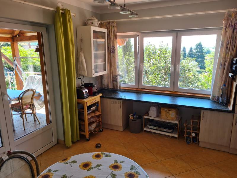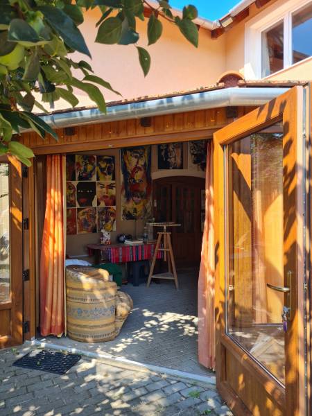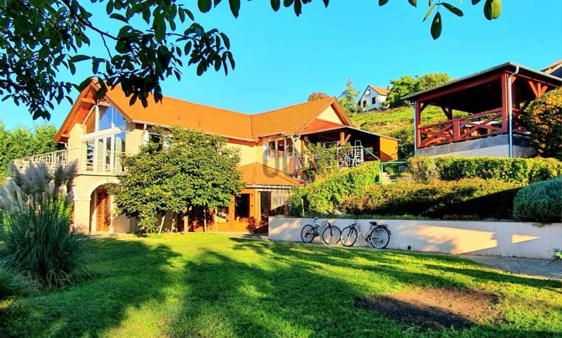 Badacsonyban vált eladóvá ez a különleges atmoszférával rendelkező épület, mely egyedi kialakításával egyből kitűnik az őt körülölelő ingatlanok közül. A területről és a ház egészéből meseszép a panoráma a Balaton vizére, de ha ez nem lenne elég, a Badacsony is ott magasodik az épület mögött.A belterületi, 1519 négyzetméteres telken a jelenlegi tulajdonos tervei és álmai alapján készült el 2005-ben a hétvégi házként bejegyzett ingatlan – mely családi otthonnak is kitűnő választás lehet -. Az épület alapjául egy már meglévő bazaltkő pince szolgált, ez került átépítésre és bővítésre korszerű anyagok felhasználásával.A ház két szinten összesen 166 négyzetméternyi hasznos alapterülettel rendelkezik.A földszinten kialakított helyiségeket az előtérből közelíthetjük meg. Itt található egy 27 négyzetméteres, parasztfödémes, meghitt hálószoba, mely közvetlen kertkapcsolattal rendelkezik és akár két különálló hálóvá osztható. Mellette kapott helyet a lépcsőház, egy fürdőszoba, tároló, pince és egy műterem.Az emeleten lévő helyiségek közül a teljes üvegfelülettel ellátott nappali/műterem és a hozzá tartozó terasz olyan egyedi és megismételhetetlen hangulatot áraszt, hogy itt egyből az az érzése az embernek, hazaért...Ezt a nappali részt egészíti ki még egy közlekedő, hálószoba, fürdőszoba, konyha és étkező, valamint egy loggia is.Az épület mindkét szintjén beépítésre került egy-egy fatüzelésű kályha, így hűvösebb időszakban ezek szolgáltatják a meleget.A kert teljesen körbekerített, több autó egyidejű parkolása is megoldható telken belül.Az udvar teraszos kialakítású, akár egy medence, gyermek játszó vagy nyári konyha kiépítésére is bőven van még hely.Az épület melletti részen egy fedett, hangulatos kerti kiülő is helyet kapott, a kert alsó részén pedig egy téglából épült tárolót is építettek.A ház egész évben aszfaltos úton könnyen megközelíthető, a Balaton partjától gyalogosan 15 percre, a központtól 2 perces autóútra van.Ajánlom az ingatlant mindazok figyelmébe, akik a “béke szigetét” keresik távol a világ zajától. Az épület állandó lakhatásra és nyaralónak is egyaránt tökéletes választás lehet!Amennyiben kérdése merülne fel az épülettel kapcsolatban, vagy szeretné azt megtekinteni, kérem keressen megadott elérhetőségeim egyikén!