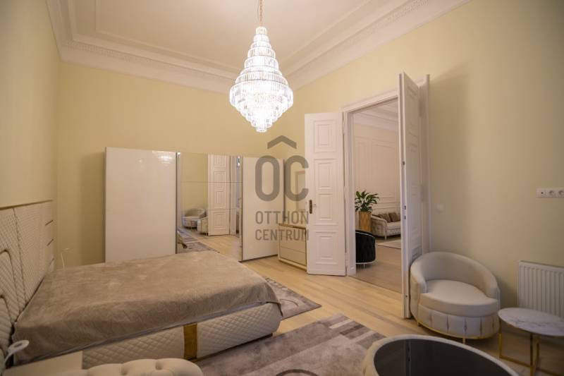 Kiadó luxus polgári lakás az Andrássy úton!Az Andrássy út eleganciáját és történelmi hangulatát ötvözi ez a 160 m²-es, 4 szobás, teljes körűen felújított, napfényben úszó polgári lakás, amely a klasszikus értékeket és a modern kényelmet egyaránt képviseli. Az 1. emeleten elhelyezkedő ingatlan tágas nappalival és 3 hálószobával rendelkezik, belmagassága eléri a 4 métert, amit a gyönyörű gipszstukkók és a spalettás polgári ablakok tesznek igazán impozánssá.A lakás utcai nézetének köszönhetően világos és napos, a hozzá tartozó TERASZ pedig különleges ritkaság a környéken. A belső terek teljesen berendezve, modern és stílusos bútorokkal várják új bérlőjüket, a konyha és a fürdőszoba minden szükséges géppel felszerelt. A lakás műszaki tartalma is a kényelmet szolgálja: gázcirkó fűtés és klímaberendezés gondoskodik az optimális hőmérsékletről.A társasház , lifttel rendelkezik, a belső udvarban pedig PARKOLÁSI LEHETŐSÉG biztosított.A lakás minden részlete új, így a bérlő egy elegáns, kifogástalan állapotú otthonba költözhet be azonnal.Az épület a főváros egyik ikonikus, reprezentatív palotája, amely a 19. század végén épült a sugárút fénykorában. A ház homlokzatát gazdag díszítés, elegáns arányok és impozáns ablakok jellemzik, belső terei a klasszikus polgári hangulatot idézik. Az Andrássy út központi elhelyezkedése miatt a ház közvetlen közelében megtalálhatók a város legnívósabb éttermei, kávézói, divatházai és kulturális intézményei, így az itt bérelhető lakás nem csupán otthon, hanem igazi életstílus is.Számos Éttermek és kávézók: Művész kávéház, Callas Café & Restaurant,Bombay Curry Bar,Hoppá! Bistro,Nem utolsó sorban az OPERA pár perc séta távolságban.A lokáció kiemelkedő: a belvárosi környezet egyszerre nyugodt és pezsgő, kiváló közlekedési lehetőségek: M1, Busz 105, 210, Deák Tér Reptéri Busz 100E, és villamosmegállók (4,6 pár perc sétára.Egyedi igényekre szabott lakáshitelekkel állunk rendelkezésére.Bankfüggetlen Hitelcentrumunk az országban elérhető összes bank és hitelintézet ajánlatát versenyezteti az Ön számára díjmentesen.Munkatársaink nagy szakmai tapasztalattal, teljes körű CSOK PLUSZ és OTTHON START PROGRAM ügyintézéssel várják Önt előre egyeztetett időpontban akár a normál munkaidő után is.Bővebb információért és a megtekintéssel kapcsolatban hívjon bizalommal!