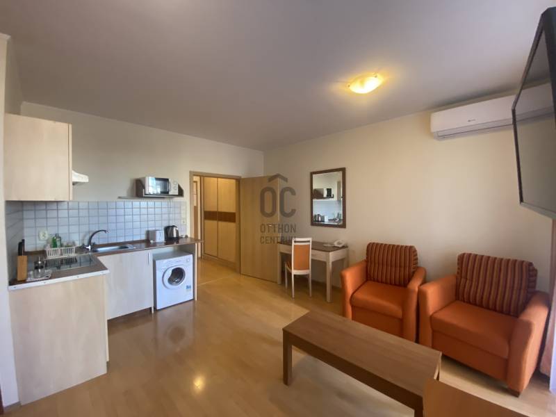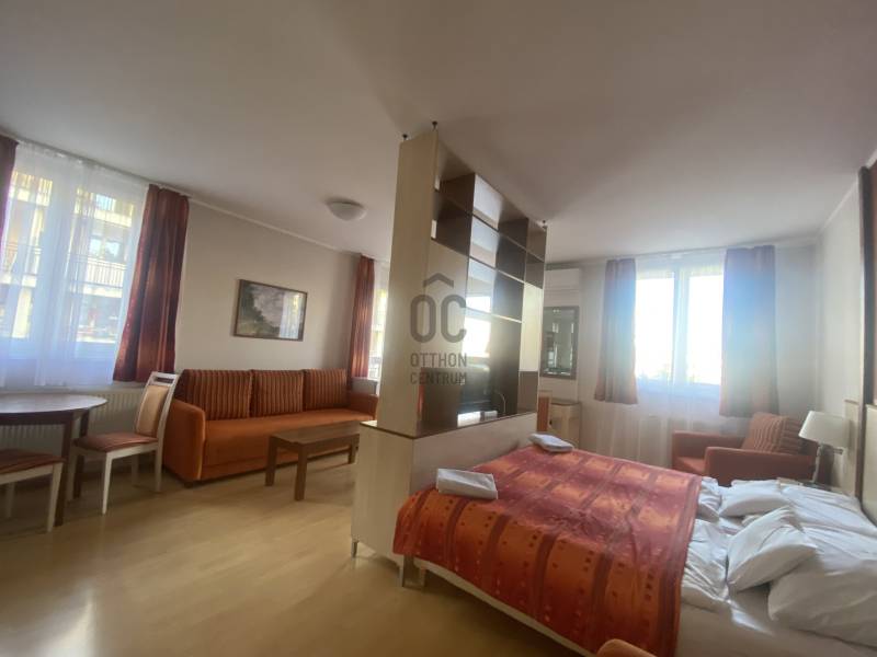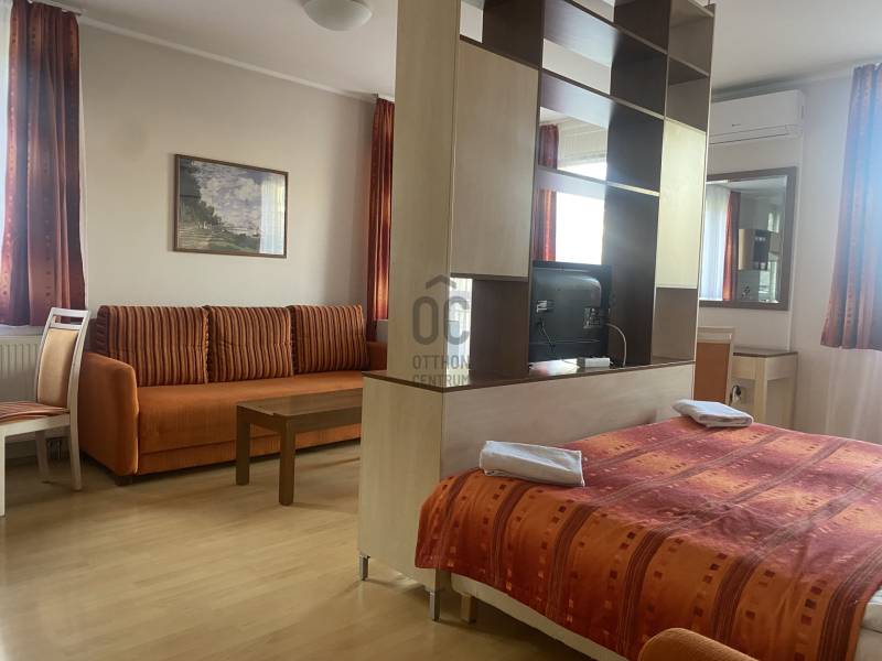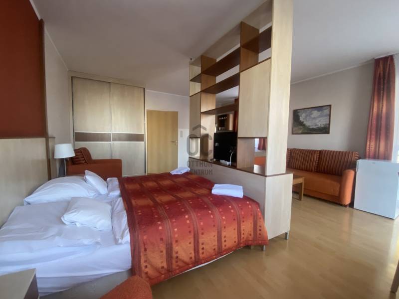 Budapest XIII. kerületében, az Országbíró utcában felújított apartmanházban hosszú távra (minimum 1 év) kiadóak modern, igényesen berendezett, gépesített, teljes felszereltségű lakások (38,7 m², 44,3 m², 32,6 m²) melyek erkélyéről parkos, zöld környezetre nyílik kilátás. A lakások nappali + hálófülke elrendezésűek.Beköltözés azonnal lehetségesBérlők száma: maximum 2 főKaució: 2 x 750 EUR/apartmanBérleti díj: 600 EUR/hó/apartmanRezsi: 150 EUR/hó/apartman, amely tartalmazza a hűtést-fűtést, áramot, vizet, internetet, kábel TV-t, heti egyszeri takarítást és a 24 órás recepció szolgáltatásátHáziállat: kis méretű, jól nevelt kutya vagy cica hozhatóAz ingatlan kiváló elhelyezkedésű, könnyen megközelíthető tömegközlekedéssel, a közelben számos bevásárlási lehetőséggel. Az épületben kávézó, étterem és üzletek is találhatók.Hívj bizalommal, ha megtekintenéd!