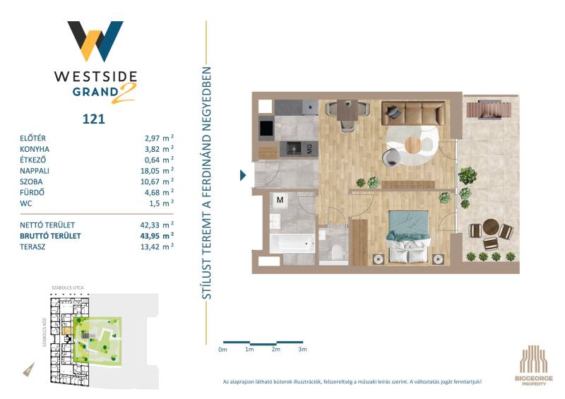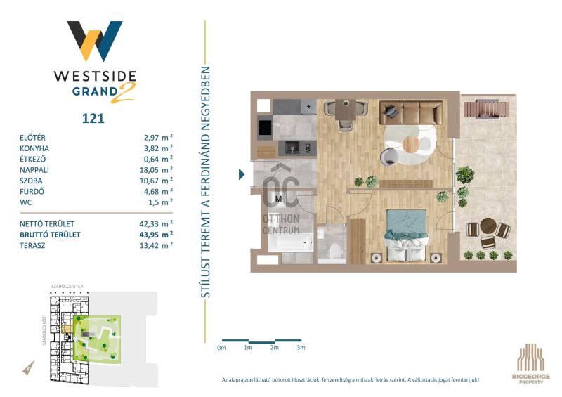 Projekt bemutatásaA projektrőlA Westside Grand I-II. a Biggeorge Property Westside fejlesztés sorozatának - a Westside Residence és a Westside Gardent követően - legújabb tagja.LokációBudapest egyik leggyorsabban fejlődő kerületének központi területén, a XIII. kerületben, a Városligettől és a megújuló Nyugati pályaudvartól sétatávolságra épül. A Nyugati pályaudvar környéke az elkövetkezendő években szinte teljesen megújul, a XIII. kerületben elhelyezkedő Szabolcs utcában, illetve közvetlen környezetében számos új építésű ingatlan épült, melyek jelentős értéknövekedést kínálnak a környéken ingatlant vásárlóknak. A több ütemben megvalósuló lakóingatlanfejlesztések hatalmas zöld parkot ölelnek körül, így a lakók akár az erkélyen ülve is élvezhetik a csendet, nyugalmat és zöld környezetet egy központi, belvárosi környezetben is.