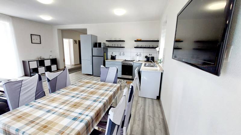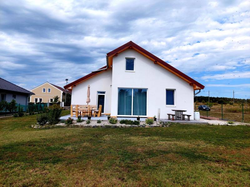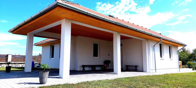 Tapolca új családi házas övezetében 2023-ban elkészült családi házat ajánlok figyelmébe. Az ingatlan hasznos alapterülete 92 nm, melyet a fedett gépkocsibeálló valamint a terasz növel.A tetőtérben további helyiségek alakíthatók ki a tulajdonos elképzelése szerint. A letisztult, fiatalos modern ingatlan minden igényt kielégít, a jelenlegi kor elvárásai szerint épült. Az épület központi helye a nyitott tágas és világos nappali-étkező konyha. Ezen központi helyen kívül három megfelelő méretű hálószoba áll rendelkezésre. A fürdőszoba tágas, modern.A két éve használatba vételi engedéllyel rendelkező épület még nem volt lakott, így leendő tulajdonosa ténylegesen egy új ingatlan birtokosa lehet. Az ingatlan fűtéséről jelenleg a nappaliban felszerelt egy nagy teljesítményű AUX hűtő-fűtő klíma gondoskodik.A ház energetikai besorolása B. A falak, a födém és a tető hőszigeteltek, az ablakok és erkélyajtók 3 rétegű hőszigetelt üvegezéssel rendelkeznek. Elhelyezkedését tekintve elvehetetlen panorámával rendelkezik a Tanúhegyekre. A teraszról a Csobánc hegy, Gulács, Badacsony, és Szent György-hegy látványa tárul elénk.Boltok, bevásárló központok, iskola, óvoda séta távolságra találhatók. Az 1004 nm-es telek körbekerített, füvesített, gondozott. A rendelkezésre álló zöldterület több féle hasznosításra is lehetőséget ad. Az ingatlan per és tehermentes, jogilag rendezett. Megvásárlását követően szinte azonnal birtokba vehető. A kínált ingatlan megvásárlásához start hitel és családi otthonteremtési kedvezmény is felvehető. Tapolca mind a turisták, mind az állandó lakosok tekintetében egy kedvelt város. Elhelyezkedésének köszönhetően a Balatonfelvidék és a Balaton közelsége miatt ideális választás lehet nyaralónak, szálláskiadás esetén jövedelem termelő befektetés. Amennyiben felkeltettem érdeklődését, vagy kérdése merül fel, úgy várom megtisztelő hívását!