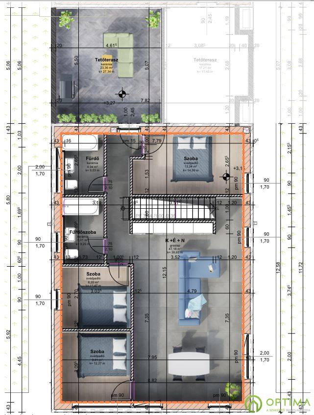 MODERN DUPLAKOMFORTOS OTTHON NAGY TERASSZAL91 m²-es, ÚJÉPÍTÉSŰ, DUPLAKOMFORTOS lakás 23 m²-es, privát TERASSZAL várja első tulajdonosát egy CSALÁDIAS, 4 LAKÁSOS HÁZ első emeletén. A tágas, 39 m²-es ÉTKEZŐ-KONYHA-NAPPALI a lakás központi élettere. A 3 HÁLÓSZOBA nyugodt, privát szférát biztosít, míg a két KÁDAS FÜRDŐSZOBA WC-vel a maximális kényelmet szolgálja.MŰSZAKI TARTALOM:- MODERN HŐSZIGETELÉS- HŐSZIVATTYÚS fűtés és hűtés- PADLÓFŰTÉS és FAN COIL rendszer- 3 RÉTEGŰ NYÍLÁSZÁRÓK- MOTOROS REDŐNY előkészítés- BURKOLATOK választhatók 10 000 Ft/m²-ig- BELTÉRI AJTÓK választhatók 100 000 Ft/db-ig- AJÁNDÉK KONYHA 1 millió Ft értékigA végső burkolatok és belső elemek választhatók, így az otthon igazán személyre szabott lehet.A ház CSENDES MELLÉKUTCÁBAN, KERTVÁROSI környezetben épül, ahol a NYUGALOM mellett minden fontos szolgáltatás, ISKOLA, ÓVODA, BEVÁSÁRLÁSI LEHETŐSÉGEK könnyen elérhetők. A BELVÁROS gyorsan megközelíthető AUTÓVAL és KÖTÖTTPÁLYÁS TÖMEGKÖZLEKEDÉSSEL is.ÁTADÁS: 2026 I. negyedévPARKOLÁS: - FEDETT GARÁZS vételára 5,5 M Ft,- FELSZÍNI BEÁLLÓ vételára 1,5 M Ft,melyek opcionálisan megvásárolhatók.KINEK AJÁNLOM? Fiatal PÁROKNAK, CSALÁDOT tervezőknek, TÖBBGYERMEKES CSALÁDOKNAK és BEFEKTETŐKNEK egyaránt kiváló választás lehet ez az ingatlan.A KIVITELEZŐ korábbi beruházásai REFERENCIAKÉNT elérhetők, részletes tájékoztatás a megtekintéskor kérhető.A megtekintés telefonos egyeztetését este és hétvégén is szívesen intézem.