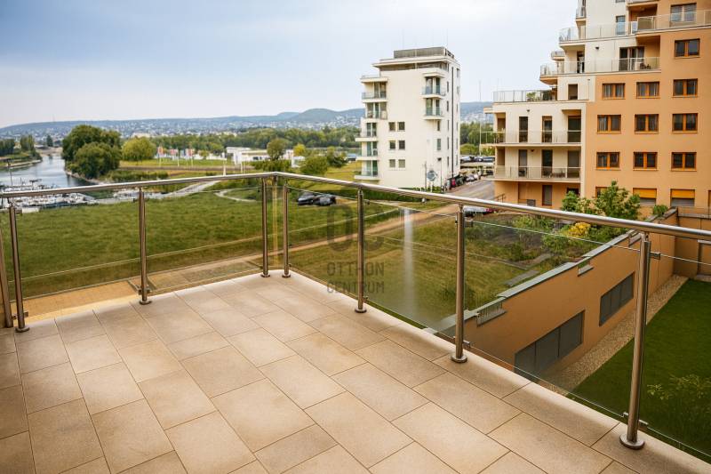 A XIII. kerület közkedvelt Duna-parti lakóparkjában, a Marina parton, a 2019-ben átadott Duna Terasz Prémium 3. emeletén, 69 m² + 16 m² terasszal rendelkező háromszobás otthon eladó. A lakás teljesen új, még soha nem lakott. 1/1 tulajdon, tehermentes, mely a vételár megfizetését követően azonnal költözhető.DUNA TERASZ PRÉMIUMA Duna Terasz Premium Budapest XIII. kerületének népszerű részén, a Foka-öböl mellett épült. A teraszház U alakú épülete egy 2500 m2-es parkot ölel körbe, amelyben a lakók számára pihenő övezetet, játszóteret alakított ki a fejlesztő. A lakópark építészete karakteres és különleges, amelyet a lépcsős, teraszos épületszárnyaknak köszönhet.A társasházban 0-24 őrszolgálat és kamerarendszer felel a lakók biztonságáért.XIII.MARINA PARTA nagyvárosok folyóparti területei a legnépszerűbb lakóövezetek szerte a világon: ez Budapesten elsősorban a Duna-part XIII. kerületi szakaszán, a Marina Parton valósult meg. A Budapest szívében található exkluzív városrész a modern lakhatás legmagasabb szintjét képviseli, tökéletes választás azoknak, akik a kényelmet és a nagyvárosi életet egyaránt értékelik. A parkosított sétányok, a kiterjedt zöldfelületek, a sportolási lehetőségek és a kényelmi szolgáltatások széles választéka gondoskodik arról, hogy minden napját teljes mértékben élvezhesse. A lakóparkban minden megtalálható, ami a mindennapi élethez elengedhetetlen.Amennyiben további információra van szüksége vagy megtekintené az ingatlant, várom hívását!Huga PéterOtthon Centrum - Marina part