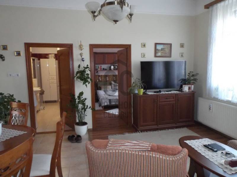 Eladóvá vált Pápa frekventált helyén, 96 nm felújított ikerház.Az ingatlan az Alsóváros közelében, a Belváros peremén helyezkedik el.Pár perc sétára a környéken megtalálható, kereskedelmi egységek. iskola, óvoda, gyógyszertár, orvosi rendelő, és különböző szolgáltatások.Központi elhelyezkedésének köszönhetően kiváló a közlekedési lehetőség akár személygépkocsival, vagy tömegközlekedéssel.A ház az 1920-as években épült téglából, vörösfenyő tetőszerkezettel, tetőhéjazata cserép.Két külön bejárattal rendelkező ikerház, mely egy 96 nm-es, és egy 89 nm-es lakásból áll, jelenleg osztatlan közös tulajdonban.A 96 nm-es házrész az elmúlt időszakban jelentős felújításon esett át, kicserélésre került az összes nyílászáró, az ablakok műanyagok, kívülről fa hatásuak.2012-ben felújításra került a tetőszerkezet, és a kémények.2013-ban megtörtént a külső főfalak vízszigetelése, valamint belülről a hőszigetelés, kicserélésre kerültek a burkolatok, a víz és villanyvezetékek, valamint megtörtént az udvar térburkolása.A lakás az udvar belső részéről nyílik, mely két szobából, tágas nappaliból, konyhából, fürdőszobából, WC-ből, gardrób szobából és közlekedőből áll.A másik lakás felújításra szorul.Fűtésről gáz cirkó kazán gondoskodik, radiátoros hőleadók segítségével, alternatív fűtésként működik egy szép cserépkályha, mely vizteres kialakításának köszönhetően képes az egész lakást is fűteni.A meleg víz ellátást a gázbojler biztosítja.A ház egy része alápincézett, mely 35 nm, közös használatú.Az udvaron két garázs épült, valamint egy részén konyhakert került kialakításra, az egész osztatlan közös terület 454 nm.A két lakás elsősorban egyben eladó, vagy hasonló időpontban, a birtokba adás miatt.A berendezés külön megállapodás tárgyát képezi.Ajánlani tudom ezt a saroktelken lévő ingatlant elsősorban két generációs családoknak, vagy akár befektetési célra is kiváló, a két lakás mindegyike rendelkezik külön villany, és gázórával.Ha felkeltette érdeklődését az ingatlan várom megtisztelő hívását.