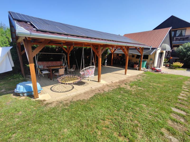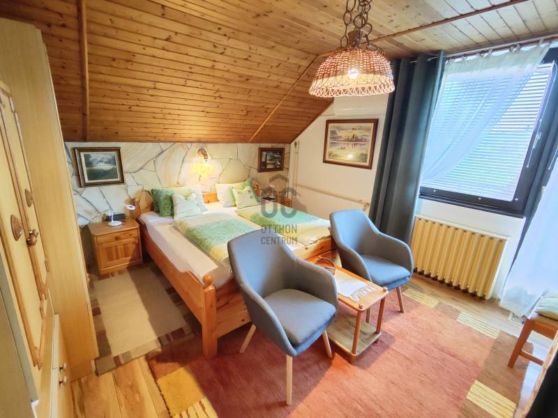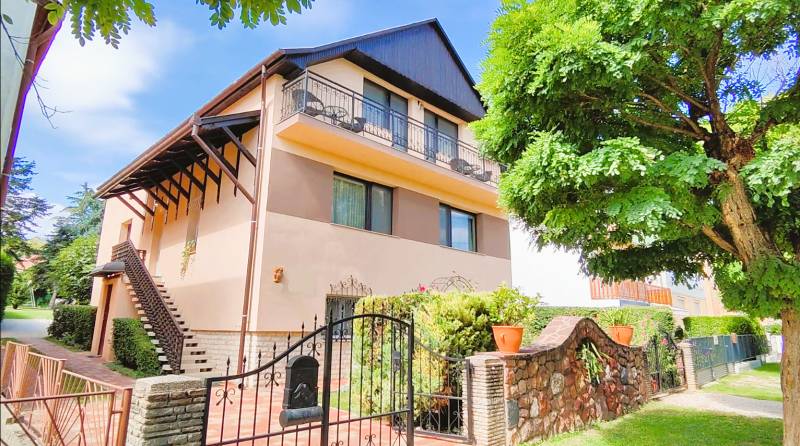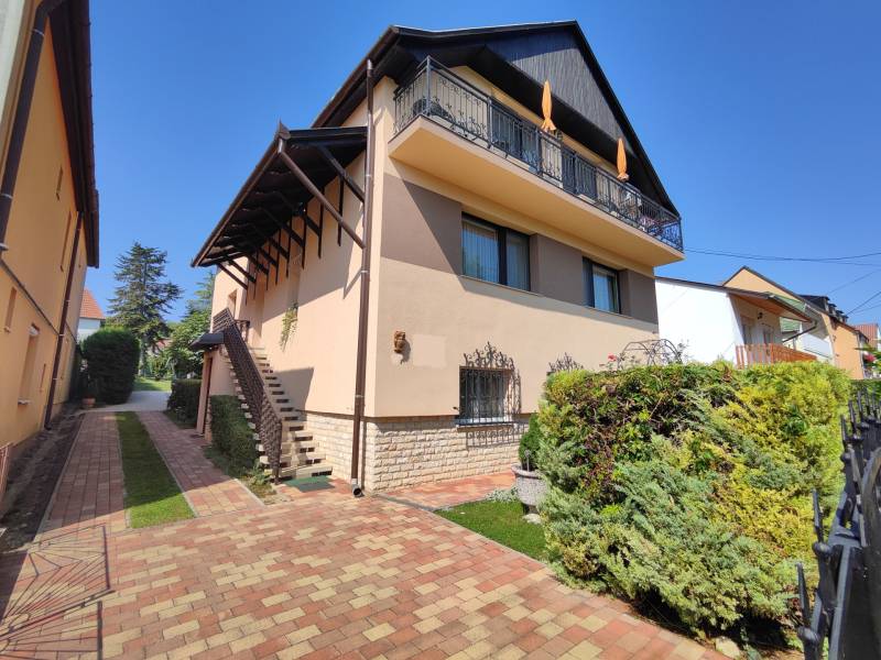 Kiemelt megbízás kizárólag irodánk kínálatában!A 795 m2-es telken elhelyezkedő ingatlan Hévíz egyik kedvelt csendes utcájában található. A jelenleg magánszálláshelyként is működő családi ház kiválló választás befektetésnek vagy akár több generációs lakhatásra is.A 88 m2-es két bejárattal rendelkező középső szinten, lépcsőház, közlekedő, előszoba, tágas nappali konyhával és étkezővel, kamra, fürdőszoba, WC, 2 hálószoba, erkély kapott helyet.A külső és belső bejárattal is megközelíthető 113 m2-es alsó szinten található nagy tároló, kazánház, illetve egy apartman melyben egy konyha-étkezővel, kamra, közlekedő, fürdőszoba/WC, 2db fél szoba, terasz került kialakításra. A legfelső 83 m2-es szinten 2 apartman található, az egyikben konyha-étkezővel, hálószoba, fürdőszoba, WC, erkély. A másikban konyha-étkezővel, 2 hálószoba, Fürdőszoba, WC erkély lett kialakítva.A ház melegéről gáz és vegyestüzelésű kazán, a középső szinten ezek mellett cserépkálya is gondoskodnak, a nyári melegekben pedig klímák a hűtésről.Az udvarban továbbá található egy fedett tásalgó, garázs és 3 fedett kocsibeálló.A ház pár éve 10cm-es külső szigetelést, a kocsibeállók tetején pedig 4 KW-os napelem rendszert kapott.A bútorok megállapodás szerint.Ha a hirdetés felkeltette figyelmét, megtekintés céljából hívjon bizalommal!Az ingatlan a központtól autóval 1 percre, Keszthely központja 8, a Balaton pedig 9 km-re található! Több gyógyfürdő is található a környéken.Így bármely évszak legyen, bármely korosztály számára kikapcsolódási lehetőséget jelenthet ezen fürdők SZÉLES SKÁLÁJÚ WELLNESS SZOLGÁLTATÁSAI! Csodálatos zöld környezetben várja Önt a világon egyedülálló Hévízi gyógytó. A tó körül elterülő erdős parkok és a város védett növényvilága a nyugodt pihenés és gyógyulás záloga. A fürdőváros tiszta levegője és barátságos atmoszférája, az itt-élők vendégszeretet mind fokozzák a gyógyhatást. A tó egész évben várja vendégeit, mivel a víz hőmérséklete télen sem csökken 22 C° alá, nyáron pedig eléri a 38 C°-ot is. A forrásbarlangból másodpercenként előtörő 410 liternek köszönhetően a tó vize három és fél nap alatt teljesen kicserélődik, ezáltal folyamatosan tiszta marad.Az adatok kizárólag a megbízóink által rendelkezésünkre bocsátott információkon alapulnak.Fentiekre tekintettel, az adatok teljességéért, helyességéért és aktualitásáért nem vállalunk felelősséget.Az árváltozás, adatmódosítás és közbeni értékesítés jogát fenntartjuk, mindezekért jogi felelősséget nem áll módunkban vállalni.