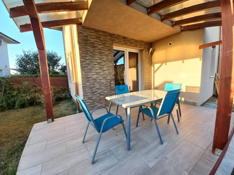 Debrecen Hatvan utcai kerti részén, gyönyörű, modern környezetben, nappali+ 3 hálószobás ikerház, gondozott kerttel eladó!Kiváló lokáció, kedvelt, sokak által előnyben részesített környezet.A belváros közelsége, illetve a nyugati városrész bevásárló üzleteinek rövid megközelíthetősége, és az autópálya gyors elérése is hatalmas előnyökkel jár az itt lakók számára.Aszfaltozott, átmenő forgalomtól mentes utcában található.Paraméterek:- 2017-ben téglából épült, szigetelt, garázzsal kapcsolatos, ikerház.- 125 nm alapterületű kétszintes, mediterrán jellegű épület- 16 nm-s garázs, elektromos kapuval ellátva- a földszinten: nappali - étkező, konyha, lépcső alatti tároló, és fördőszoba zuhanyzóval és WC- vel.- emeleti részén: 3 hálószoba, 1 fürdőszoba, 1 háztartási helyiség került kialakításra- műanyag, hőszigetelt nyílászárók- kondenzációs gáz cirkó kazán biztosítja a fűtést és a melegvíz ellátást.- padlófűtés a földszinten, radiátoros hőleadók az emeleti helyiségekben - a nappali közvetlen kapcsolatos a kellemes déli tájolású fedett terasszal- cc 150 nm -s parkosított, körbekerített kertben pihenheti ki a hétköznapok fáradalmaitTiszta tulajdoni viszonyok, hamar birtokba vehető otthon.Hívjon bizalommal, és nézze meg személyesen! Debrecen, Hatvan utca, kert, eladó, ház, iker, garázs,