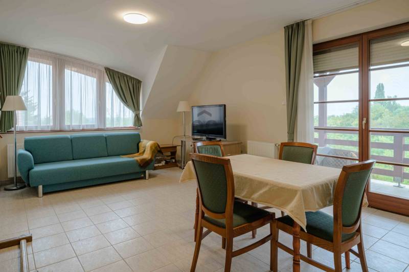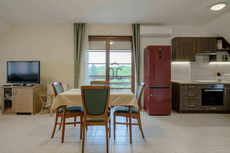 Eladásra kínálunk egy 71 m²-es, hangulatos, erkélyes lakást Alsópáhok rendezett, csendes lakóparkjában saját parkolóhellyel.Az ingatlan praktikus elrendezésének köszönhetően kiváló választás állandó otthonnak vagy nyaralónak.Az előszobában és a nappaliban kerámia padlóburkolat van, a két hálószobában padig parketta.Erkély panorámával2 kényelmes hálószobaTágas nappali-konyha-étkező egy légtérbenFürdőszoba és Wc egy helyiségbenModern konyhai gépek (főzőlap, sütő)A lakás műszaki tartalma:- Vaillant gaz kazán, klíma- Dupla üvegű hőszigetelt fa nyílászárók- Redőny és szúnyogháló minden ablakonA lakópark:- Elektromos kapuval zárt- Rendezett, gondozott kert.A csendes, biztonságos környezet, egyedülálló lehetőséget kínál azoknak, akik kellemes környezetre vágynak.Az alaprajz tájékoztató jellegű.