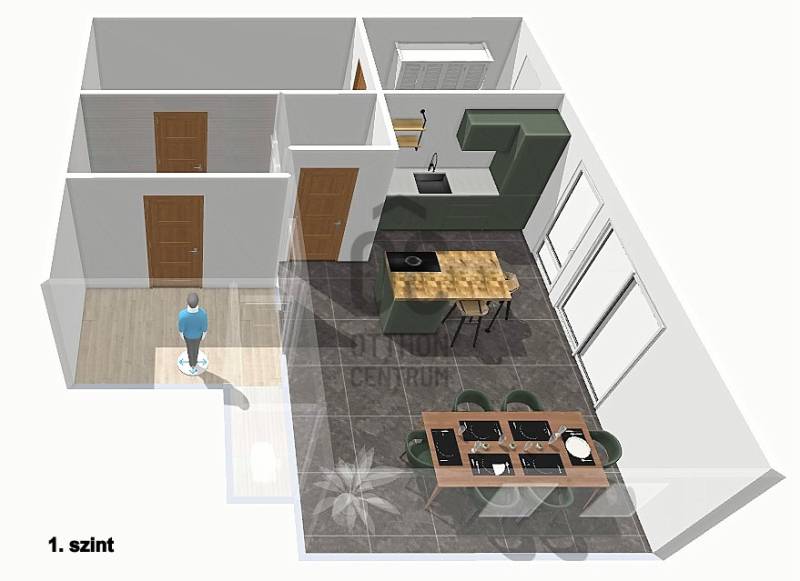 Leányfalun a hegyoldalban kínálok eladásra egy Dunai panorámával rendelkező szinteltolásos családi házat,egy 1002 m2-es telken.A ház 6 cm szigeteléssel rendelkezik, és egy nyári konyha valamint egy kolbász füstölő és egy kemence is tartozik hozzá.A padlás felől üveggyapot szigetelés van, a tetőfedés alapanyaga műemlékpala.A telek hátsó frontja a Pilisi parkerdővel határos.A 11-es főút 600 méter és aszfaltos úton megközelíthető.A Leányfalusi strand 1 km-re van, és hasonló távolságban bolt, óvoda, iskola és bölcsőde.A lakótér több bejáraton keresztül is megközelíthető, ezek közül az egyik a nappaliból nyíló, hatalmas terasz, amirőla fent említett örökpanorámás kilátást csodálhatjuk.Az épületben 2 fürdő és 3 mellékhelyiség található.A 6 szobás épületben egy külön kis garzonlakás lett kialakítva, ezzel is növelve a lehetőségeket, akár több generációegyüttélésére is.Némely helyiség felújításra szorul, melyek leginkább a burkolatok cseréjét rejtik magukban.Az ingatlan egyébként egy festés után lakható állapotú, a jelenlegi tulajdonos kiköltözése után.Ha felkeltette az érdeklődését, vegye fel velem a kapcsolatot.